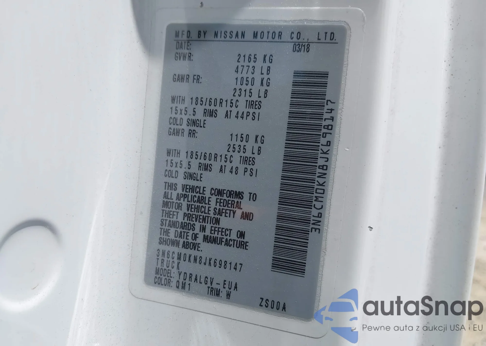 • VIN 3N6CM0KN8JK698147