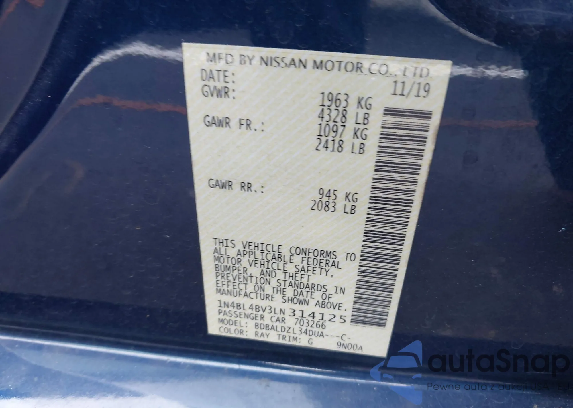 • VIN 1N4AZ0CPXDC412617