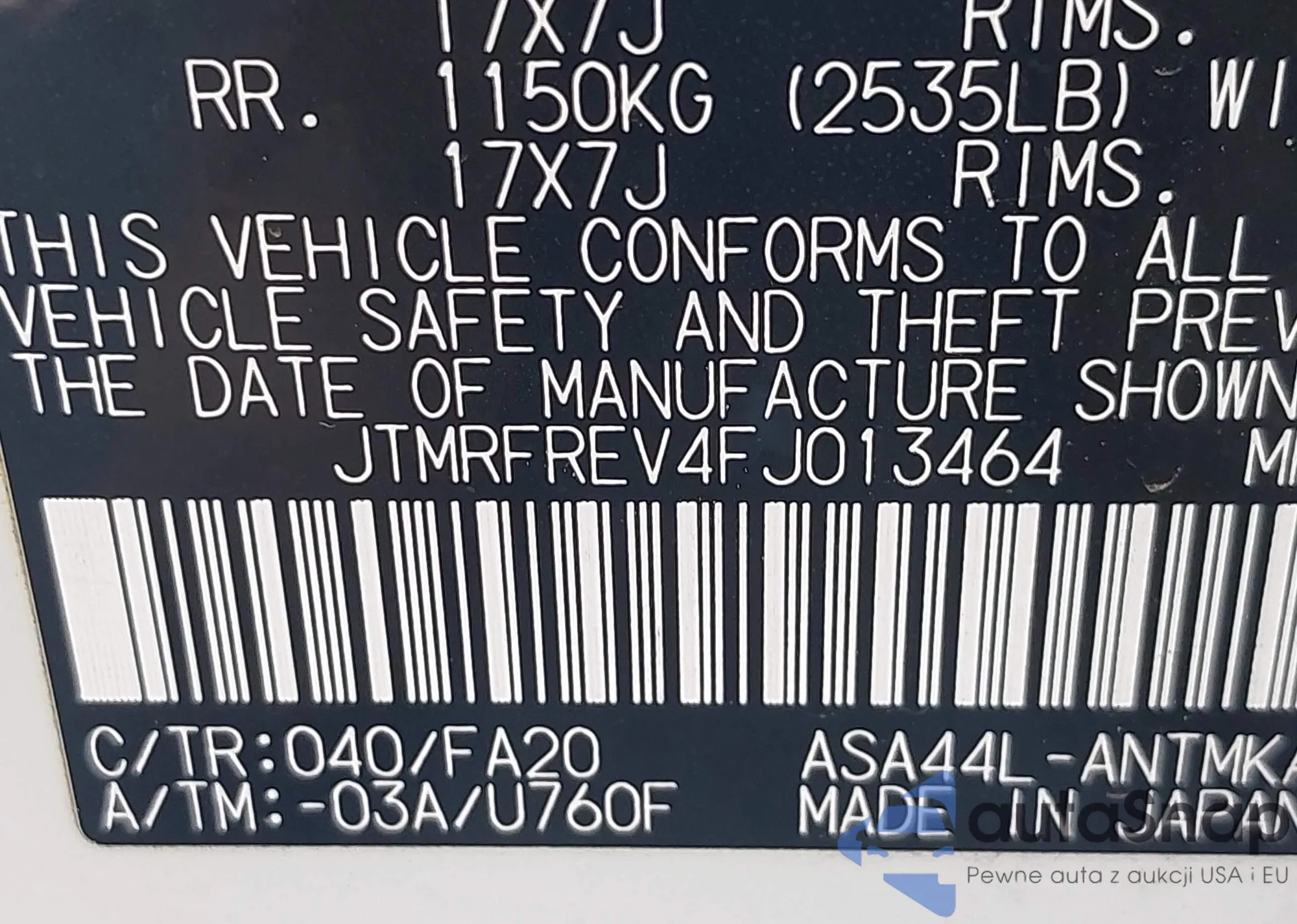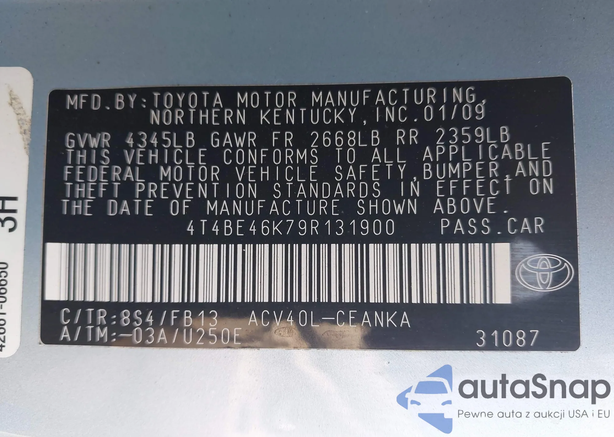 • VIN 4T4BE46K79R131900