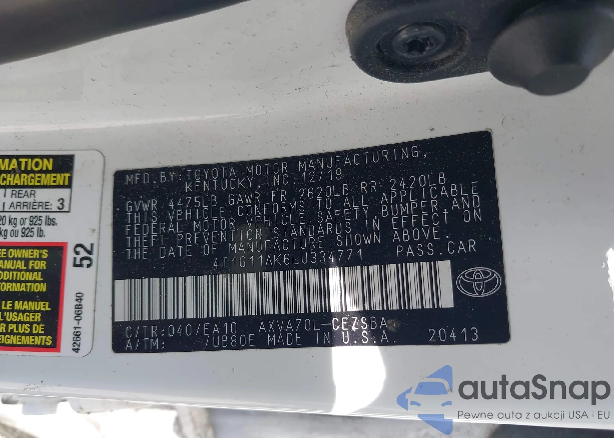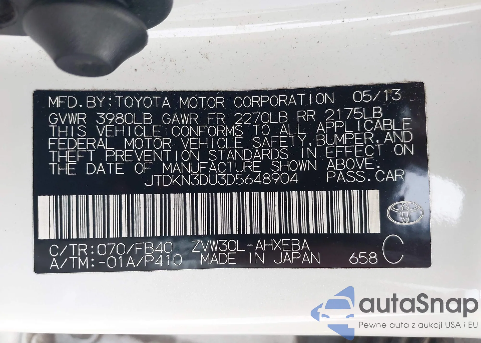 LOT: 42894910 VIN: JTDKN3DU3D5648904