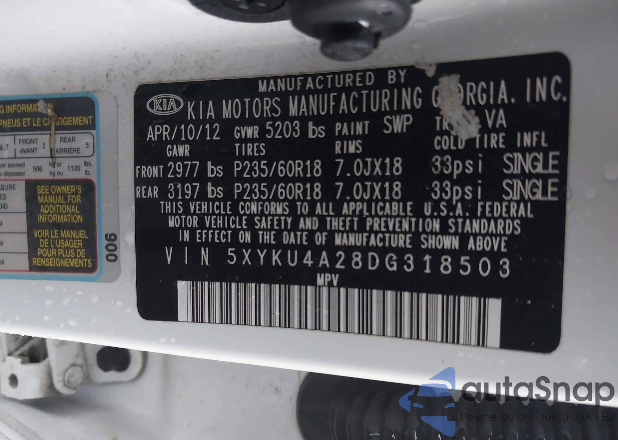 • VIN 5XYKU4A28DG318503