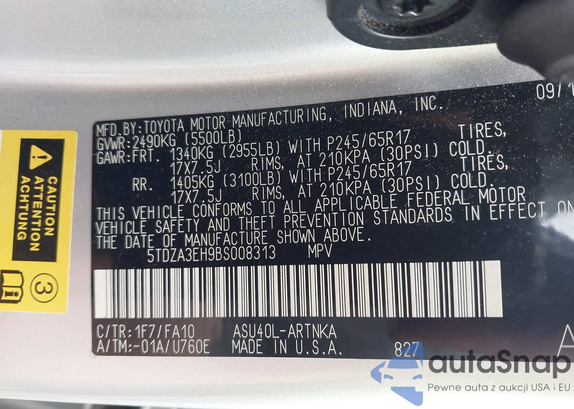 • VIN 5TDZA3EH9BS008313