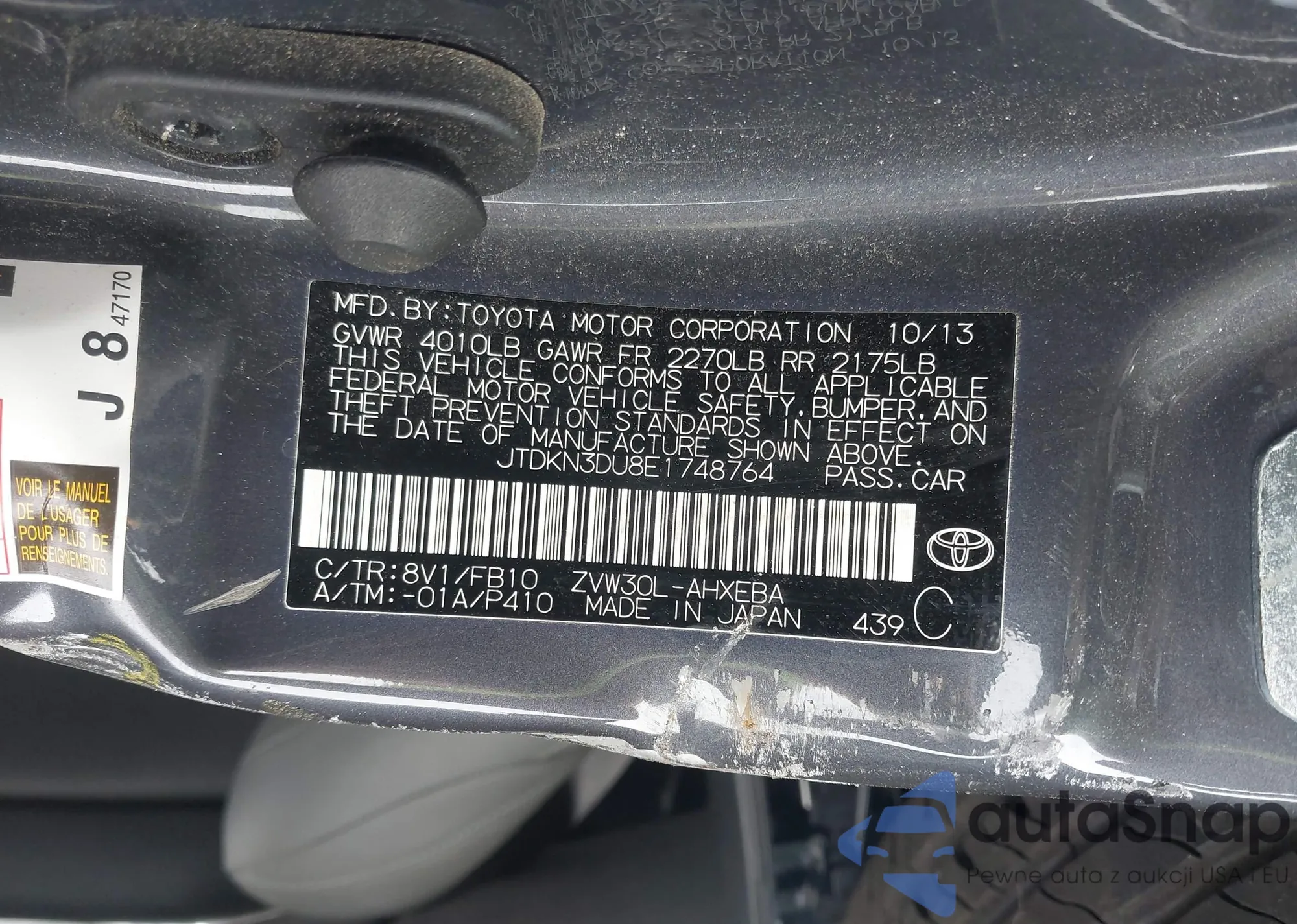 LOT: 42914726 VIN: JTDKN3DU8A0142008