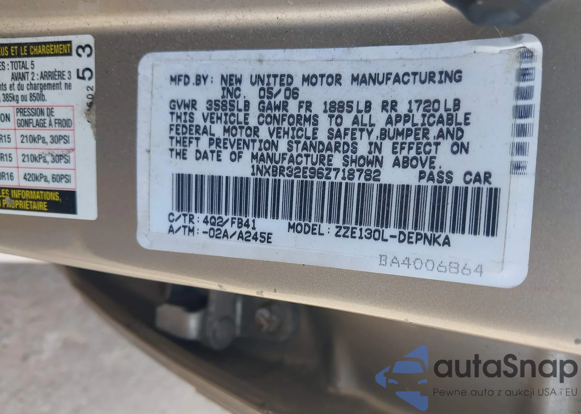 LOT: 42833764 VIN: 5TFUX4EN9DX018079