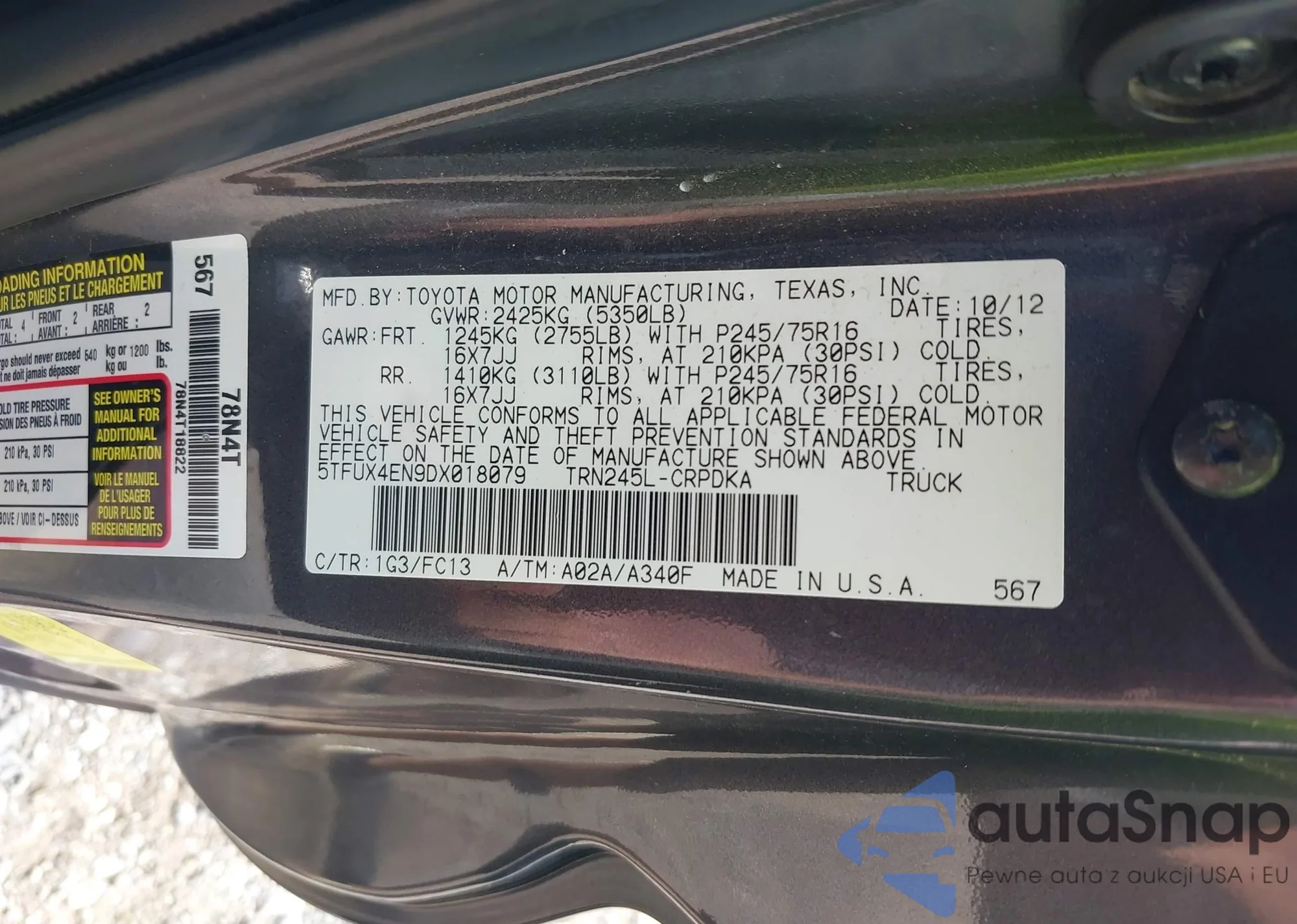 • VIN 5TFUX4EN9DX018079