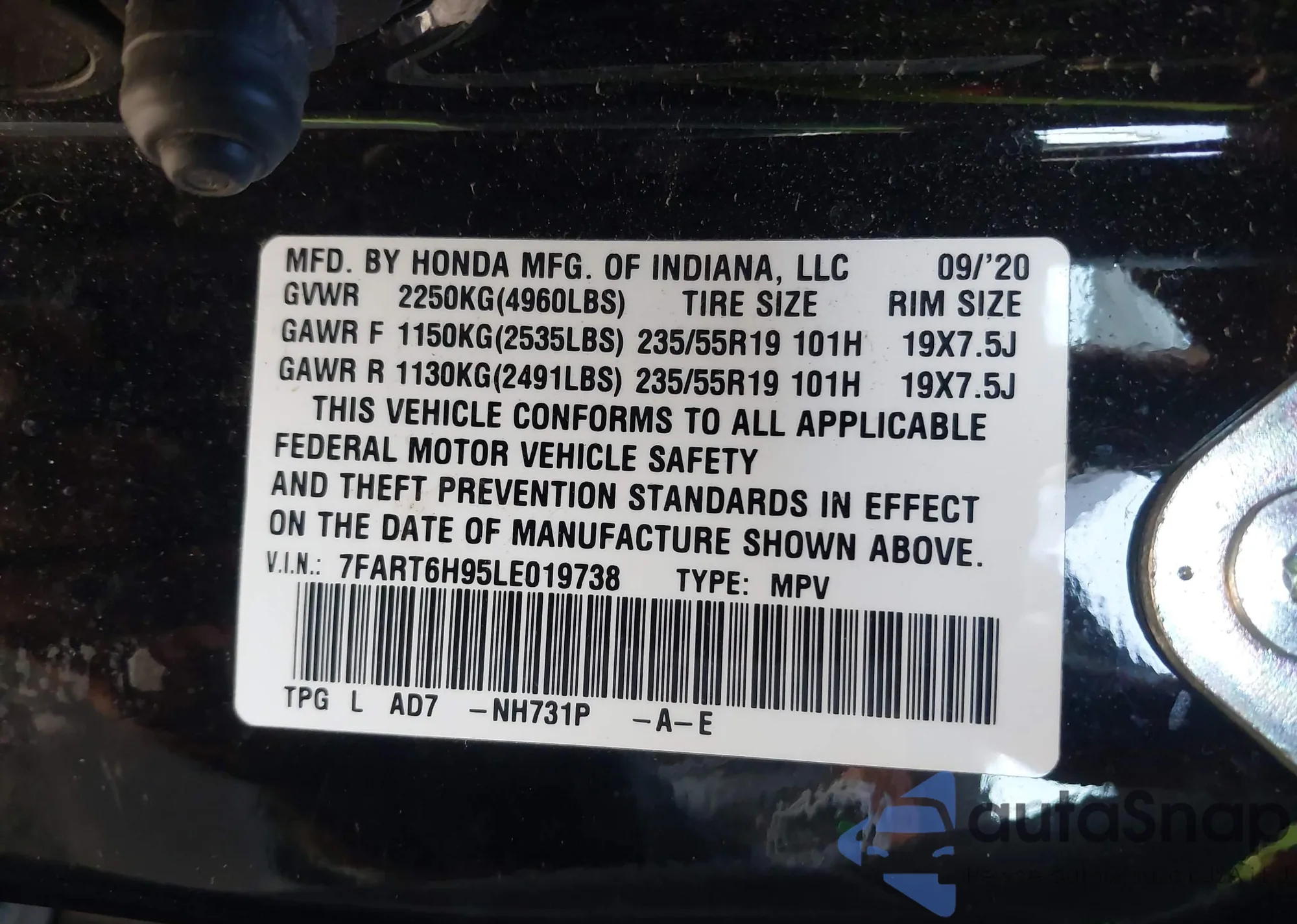 • VIN 7FART6H95LE019738