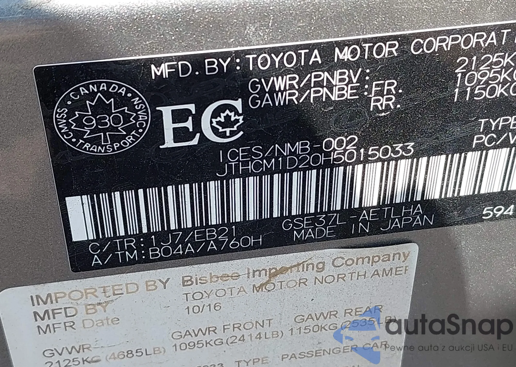 • VIN JTHCM1D20H5015033