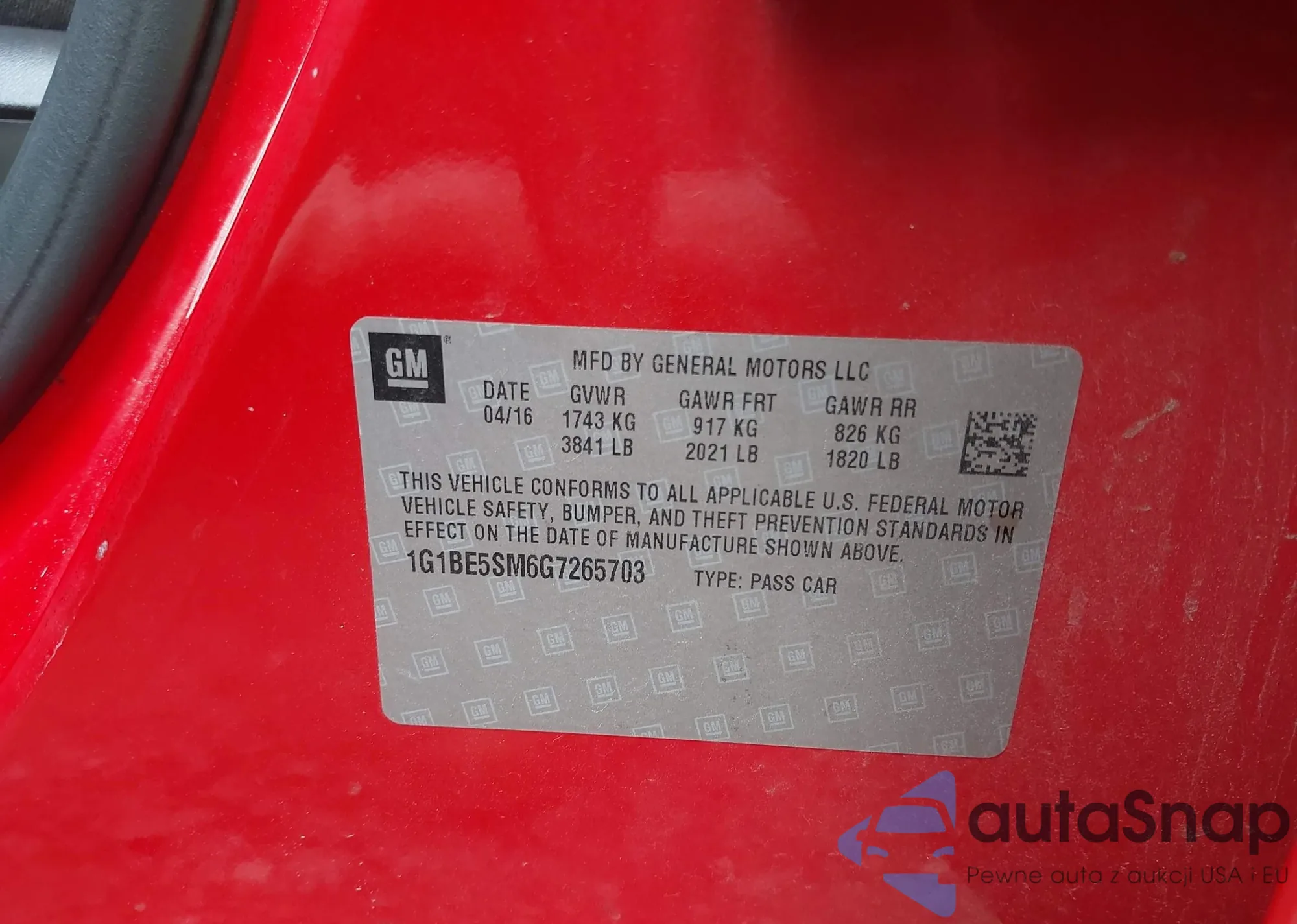 LOT: 42739037 VIN: 1G1PA5SH4D7248186