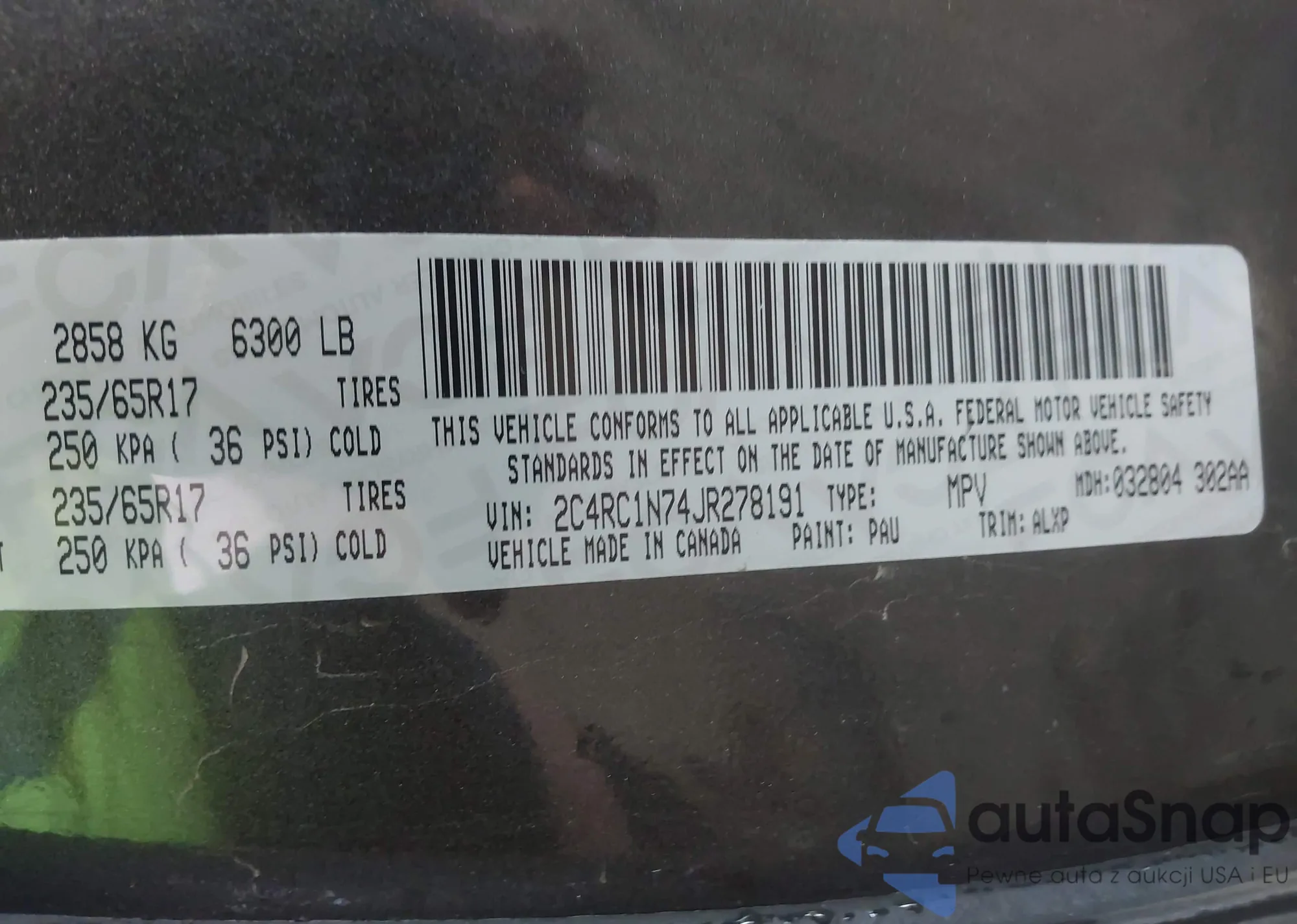 • VIN 2C4RC1N74JR278191
