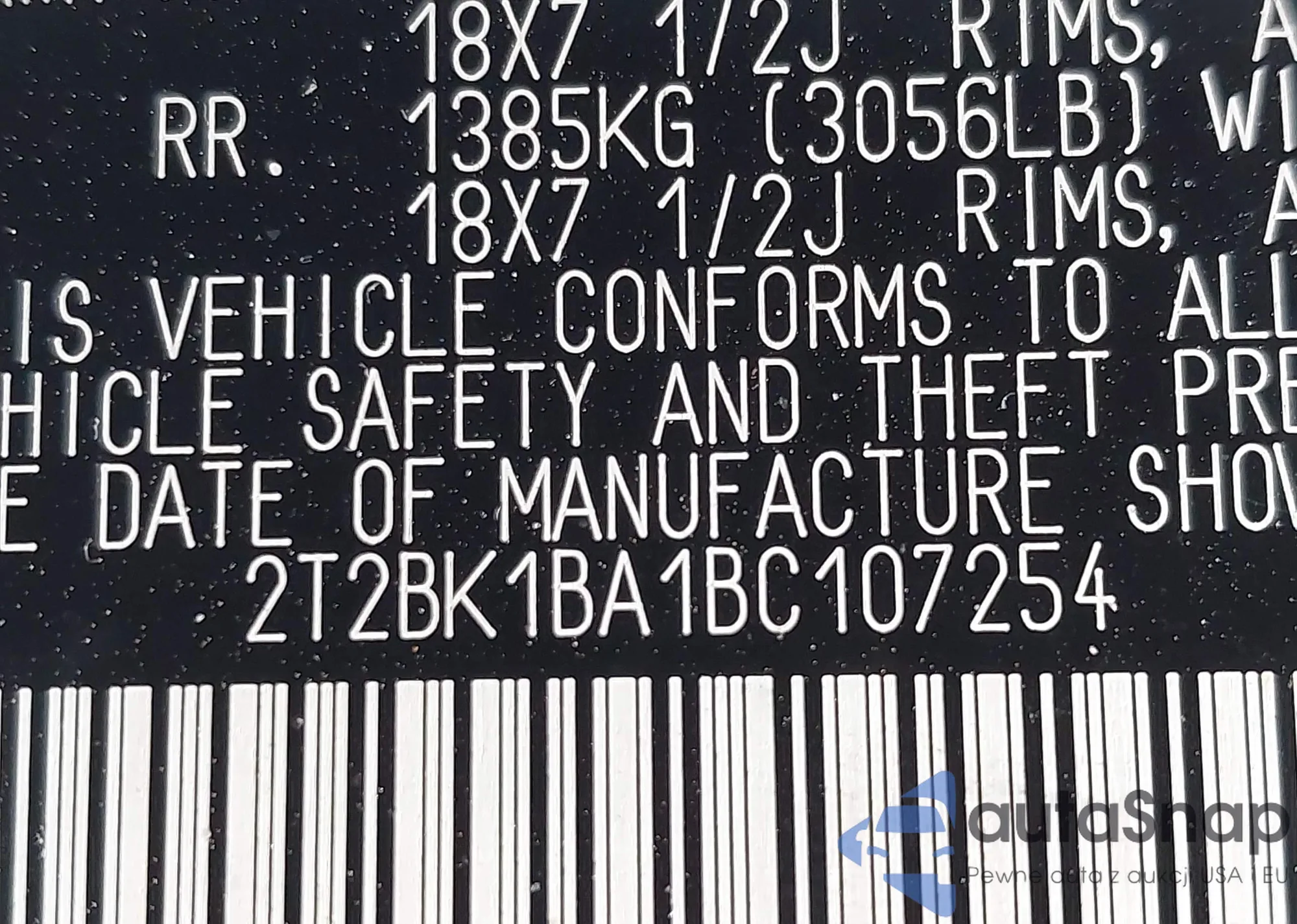 LOT: 42886499 VIN: 2T2BK1BA1BC107254