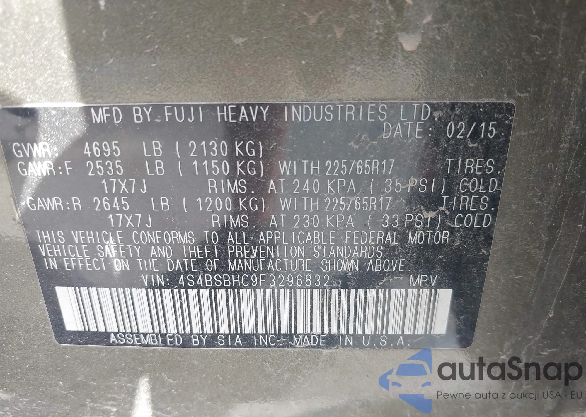 LOT: 42813055 VIN: 1HGCR2F35FA154336