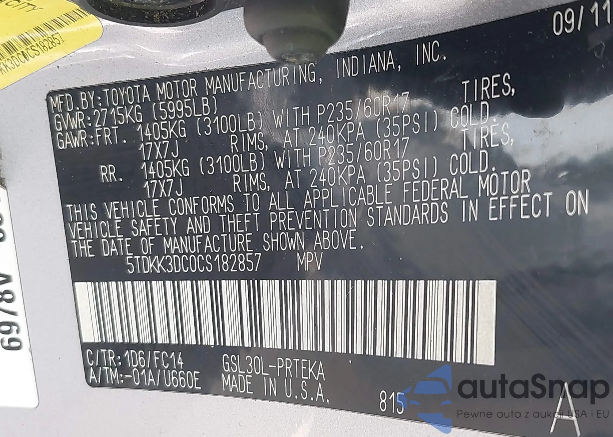 LOT: 42920472 VIN: 5TDKK3DC0CS182857