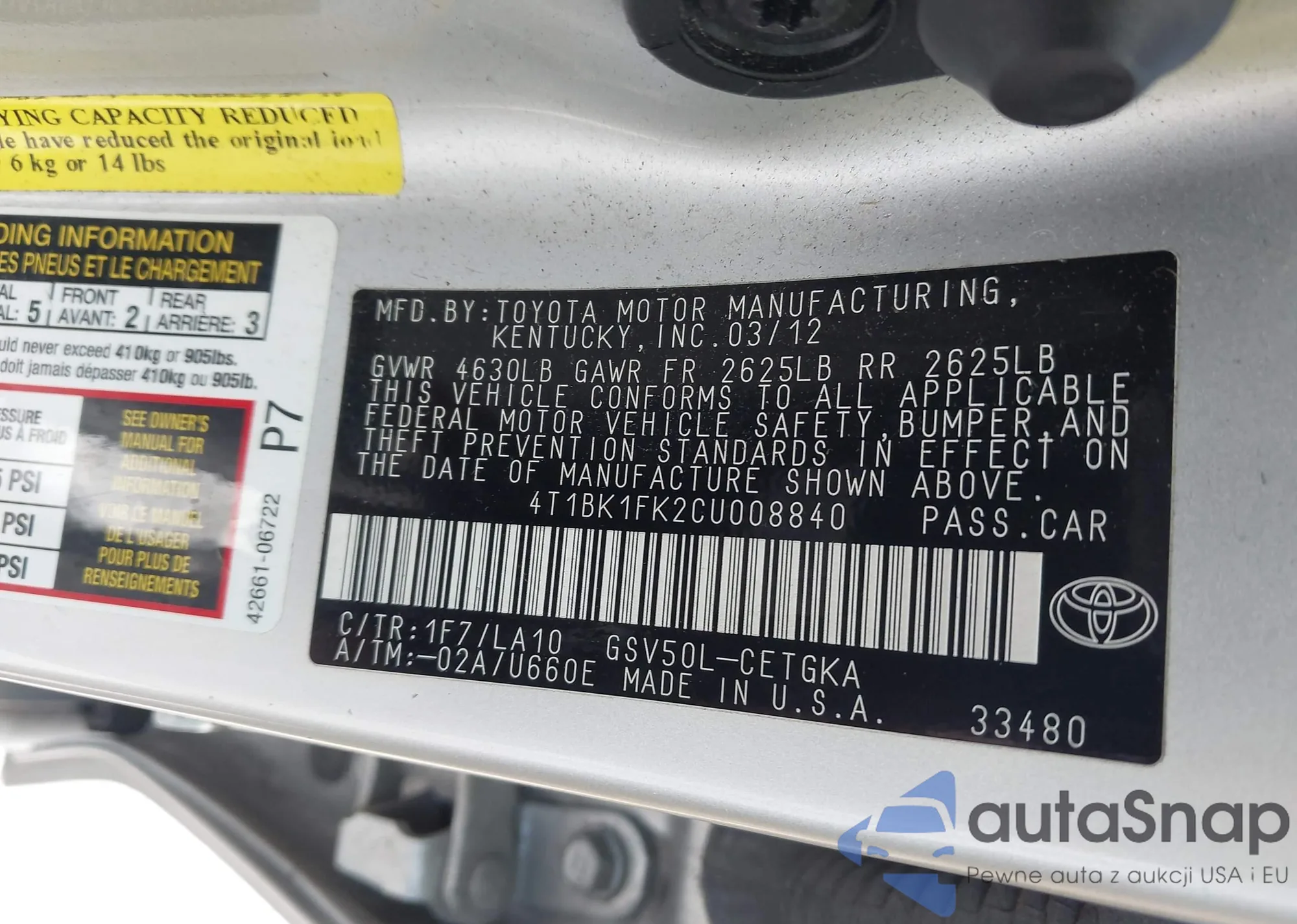 • VIN 4T1BK1FK2CU008840