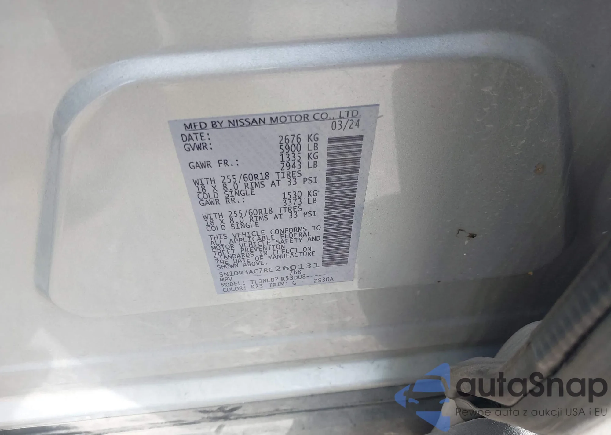 LOT: 43038567 VIN: 5N1DR3AC7RC260131