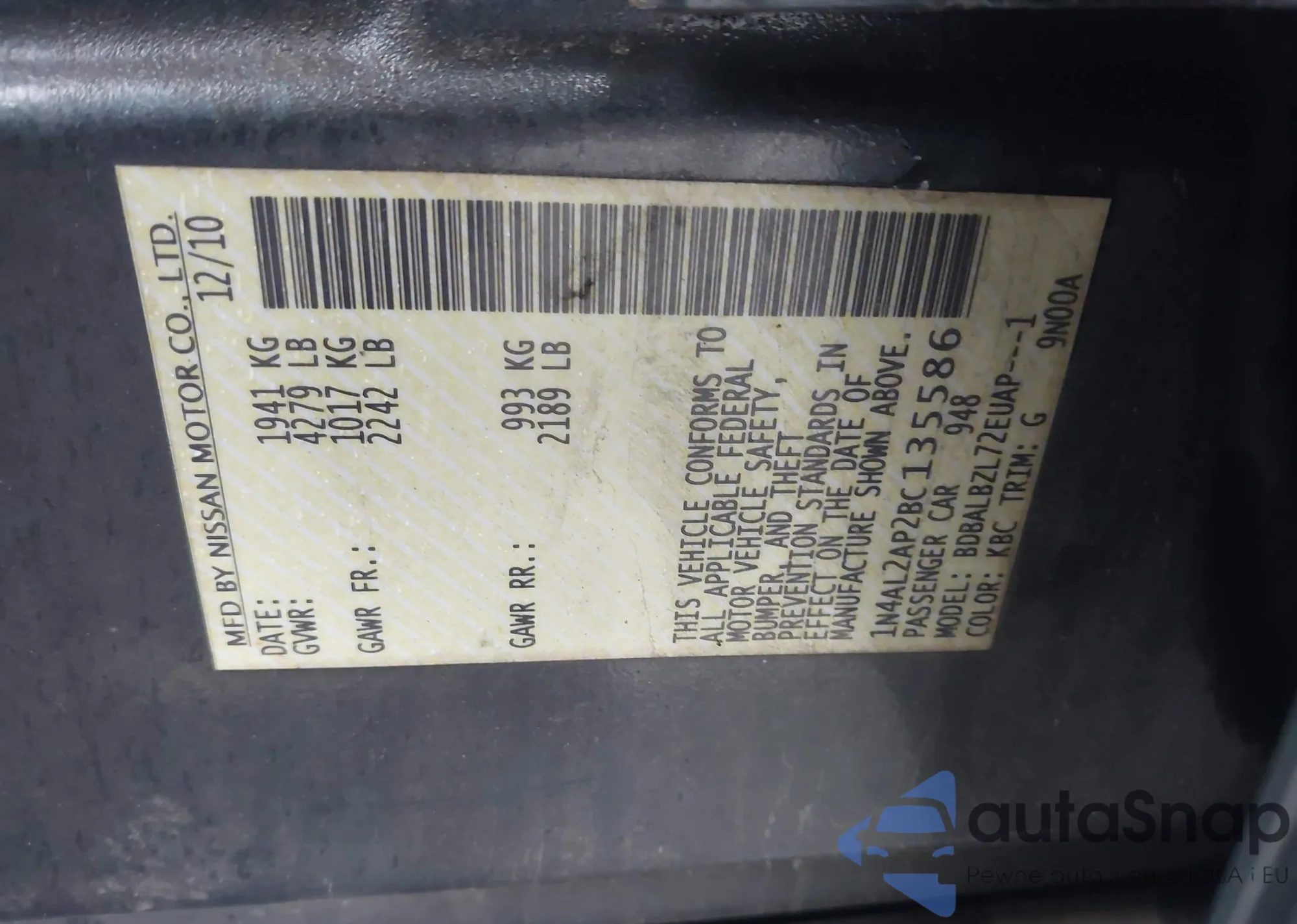 LOT: 42607904 VIN: 1N4AL2AP2BC135586