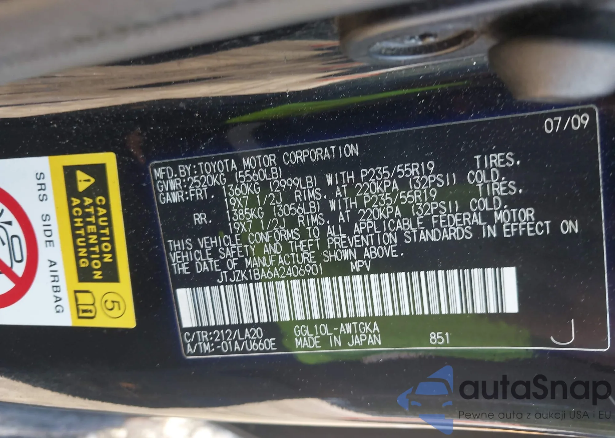 • VIN JTJZK1BA6A2406901
