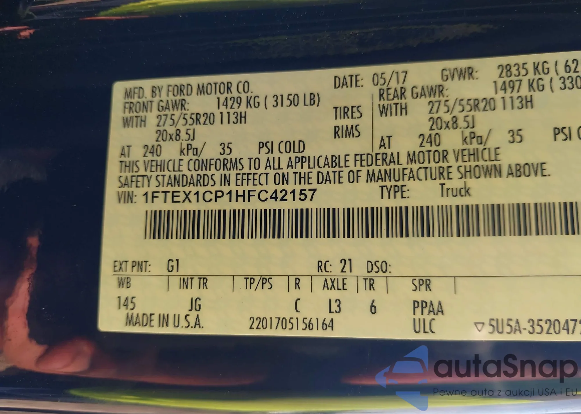 LOT: 42646049 VIN: 1FA6P8CF5F5317343