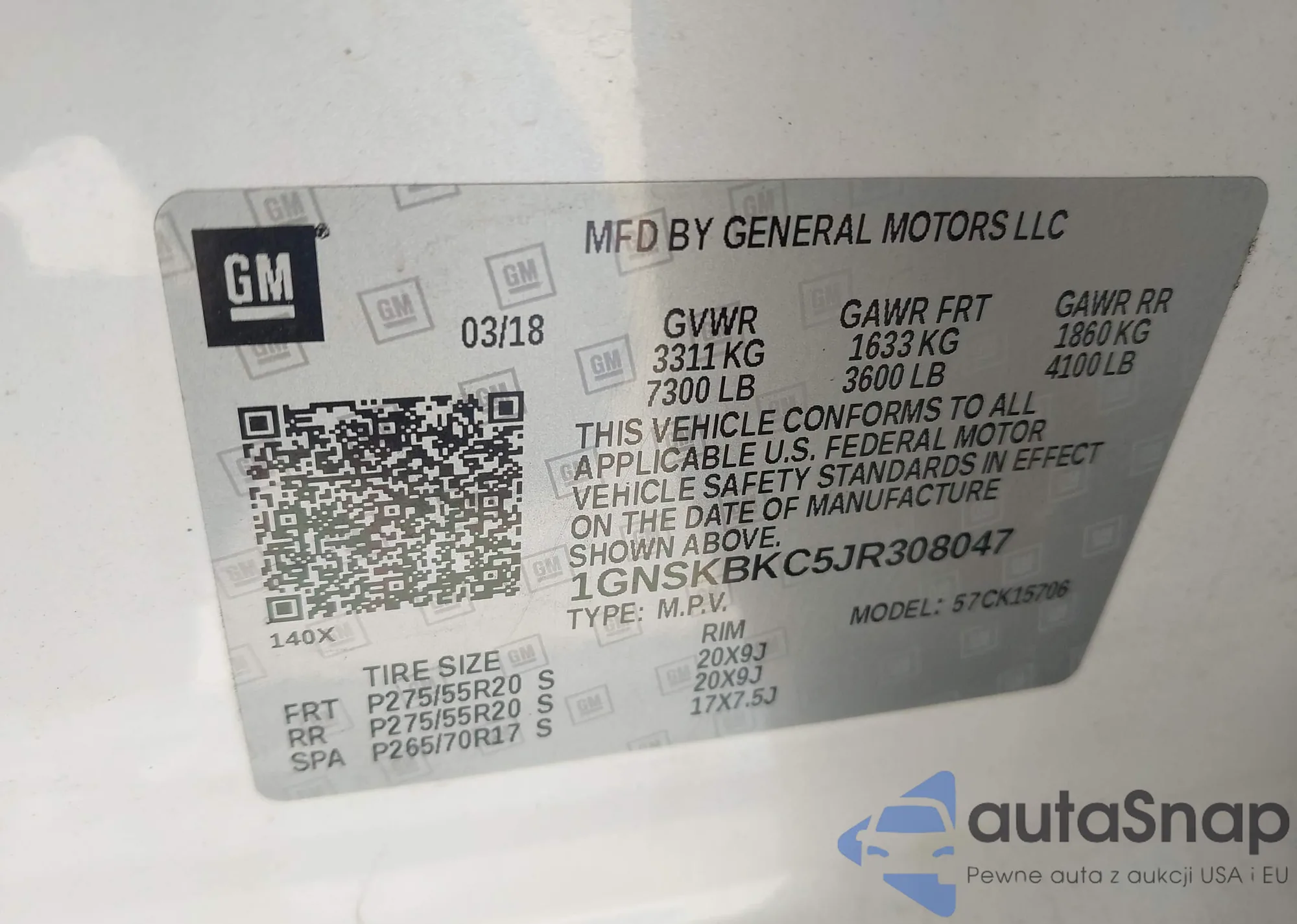 LOT: 42710178 VIN: 1GNSKBKC5JR308047