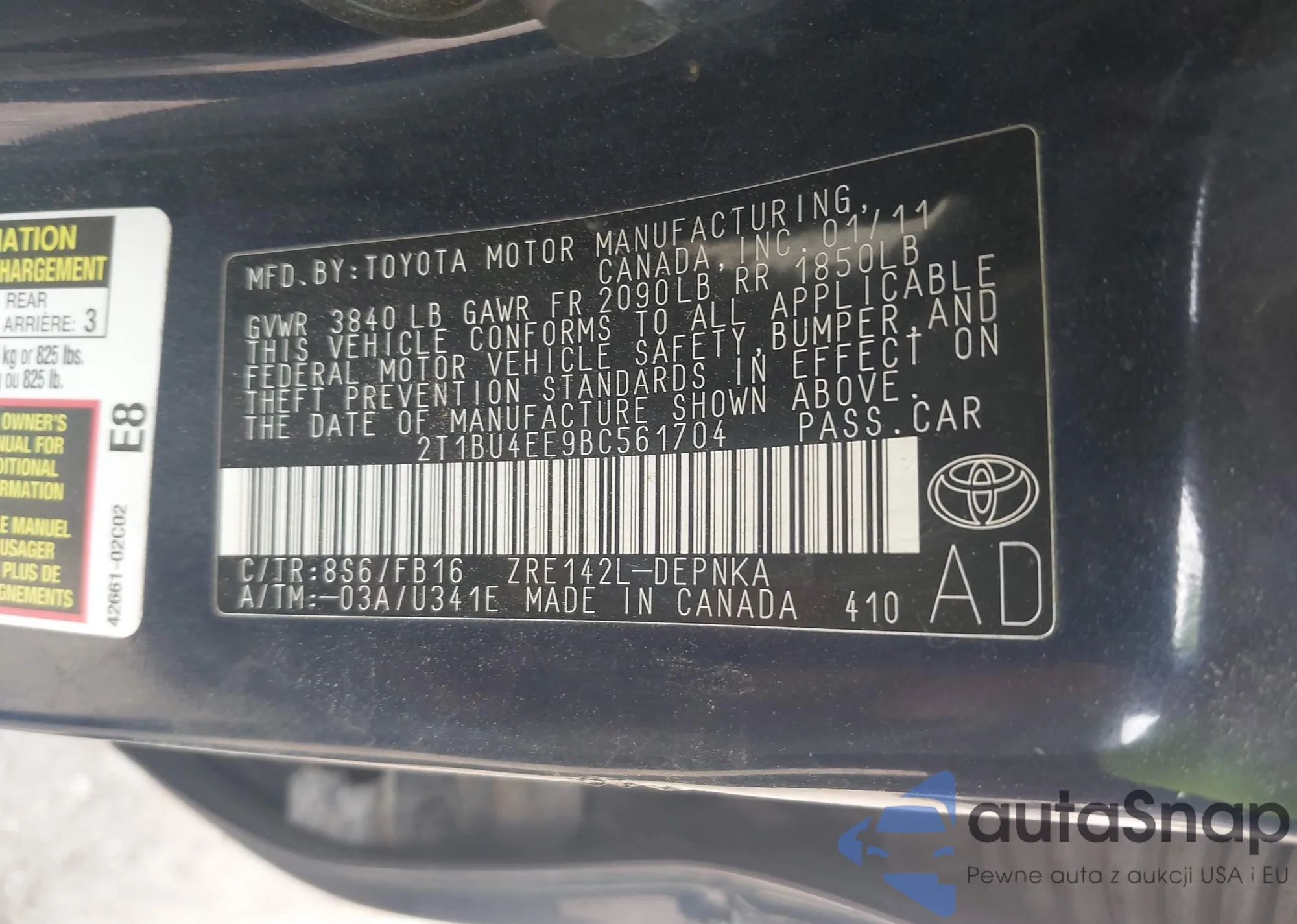 • VIN 2T1BU4EE9BC561704