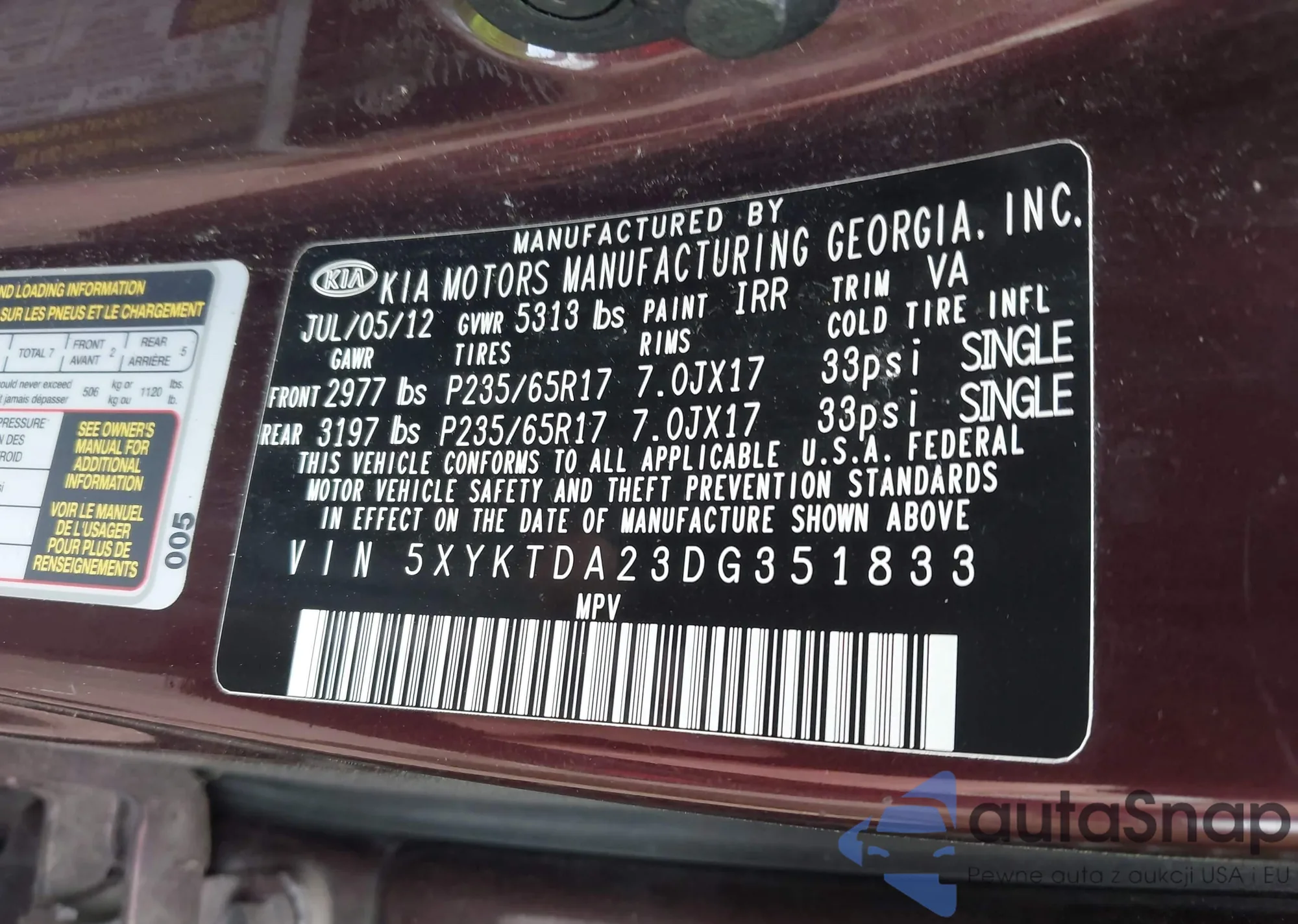 LOT: 42865576 VIN: KNDMG4C76B6365750
