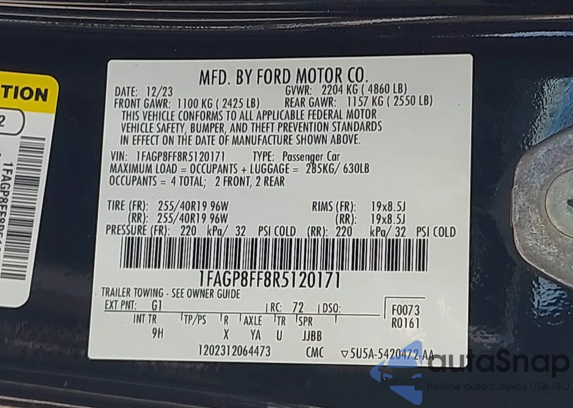 • VIN 1FAGP8FF8R5120171