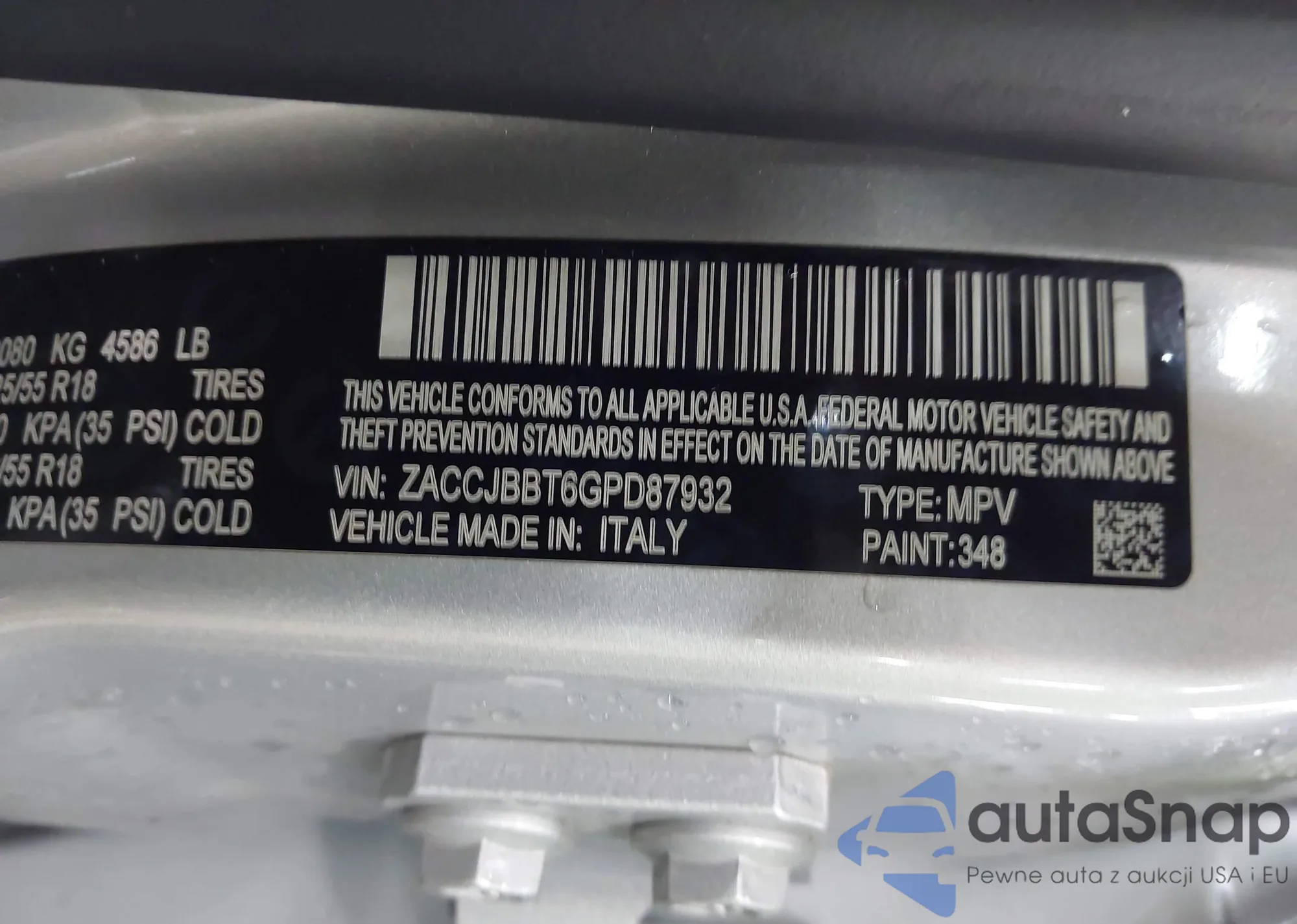 LOT: 42665223 VIN: ZACCJBBT6GPD87932
