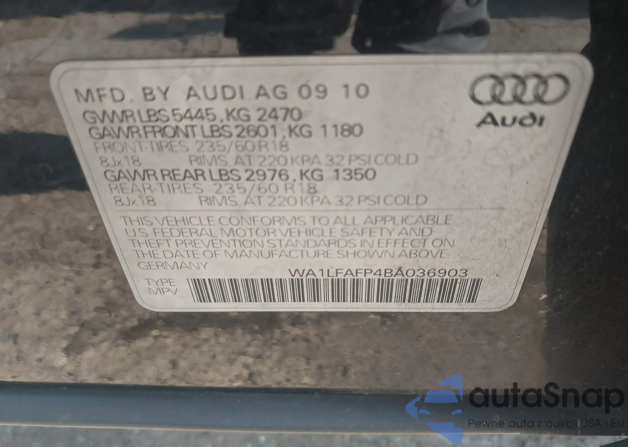 • VIN WA1LFAFP4BA036903