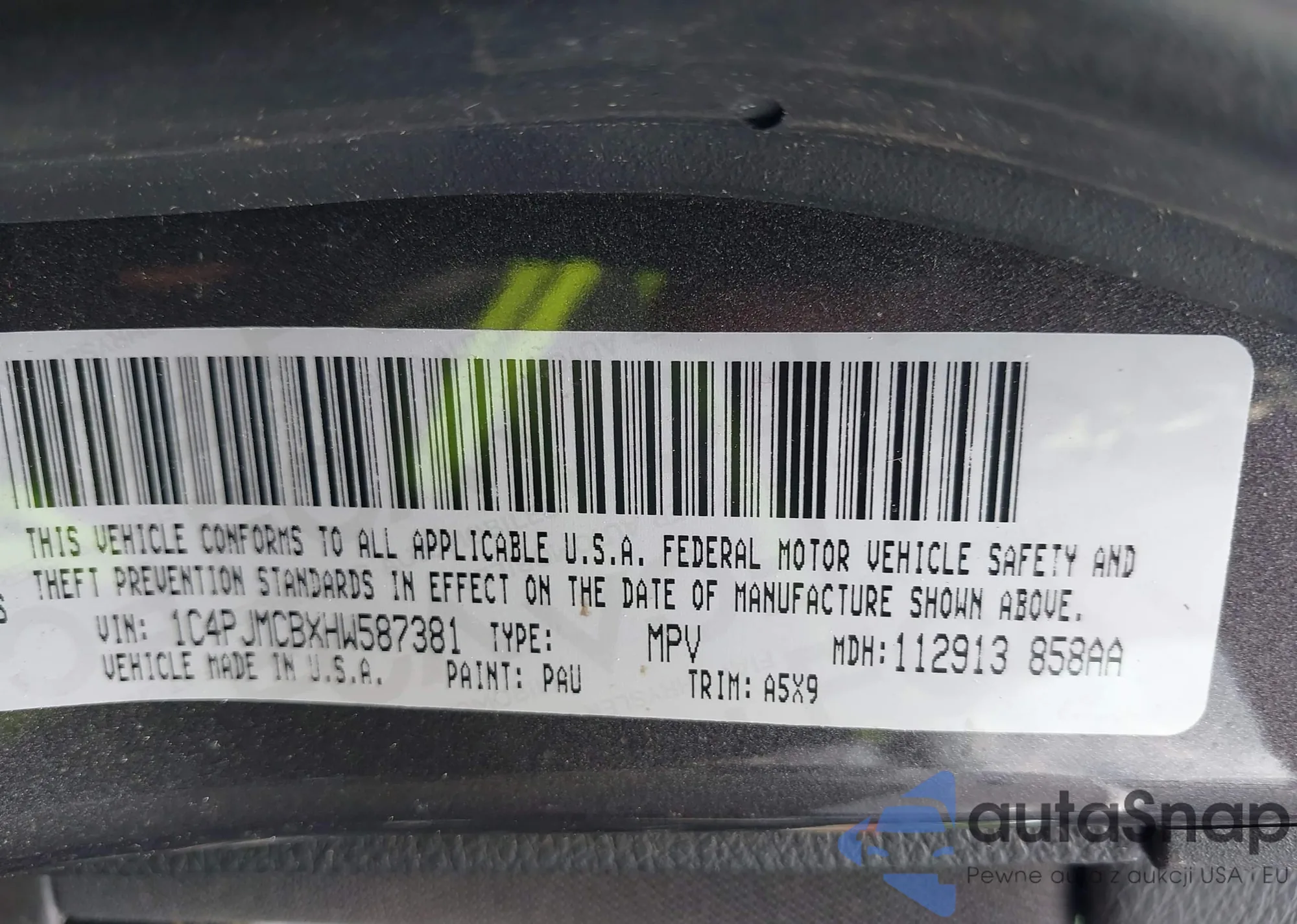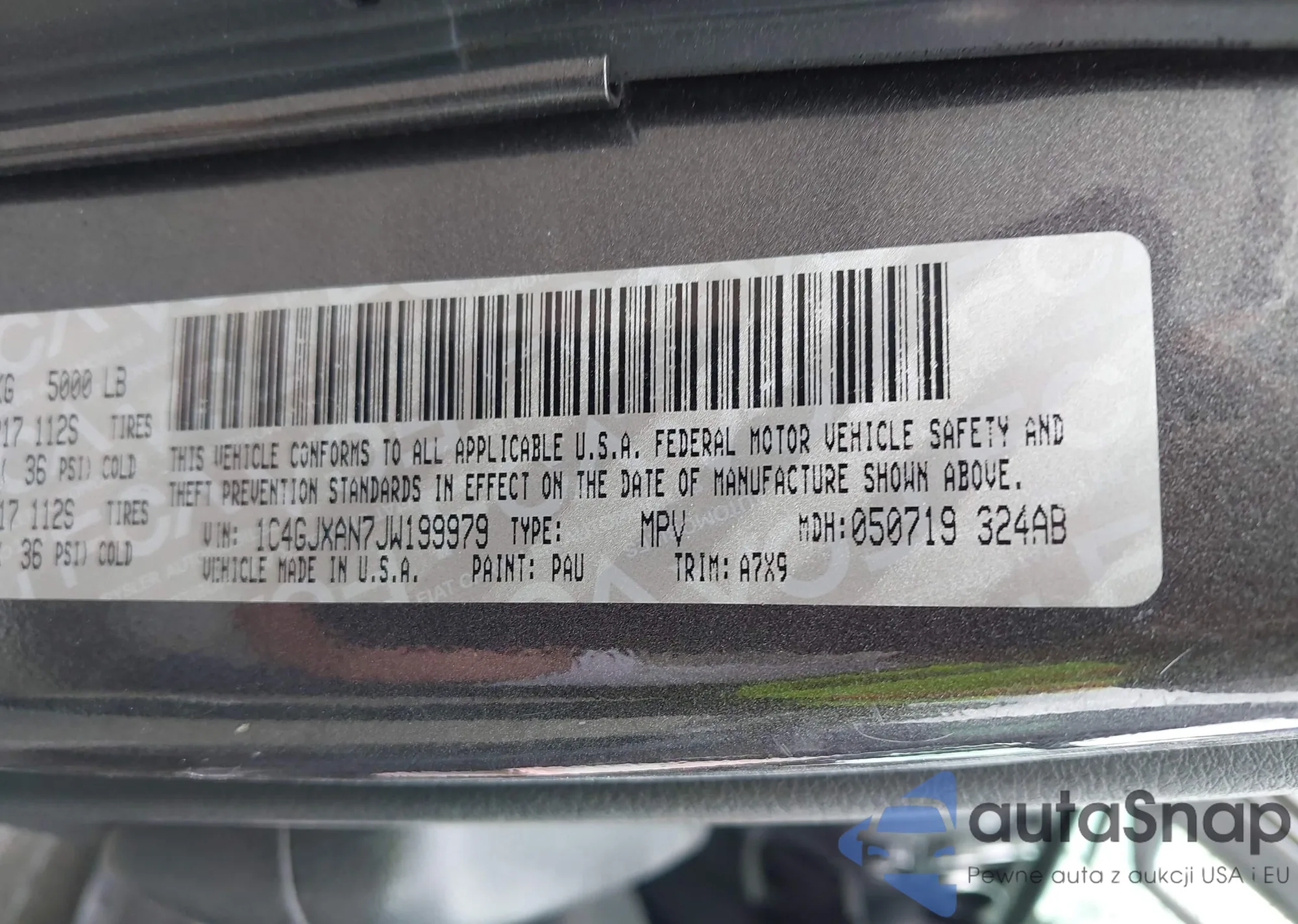 LOT: 42863009 VIN: 1C4GJXAN7JW199979