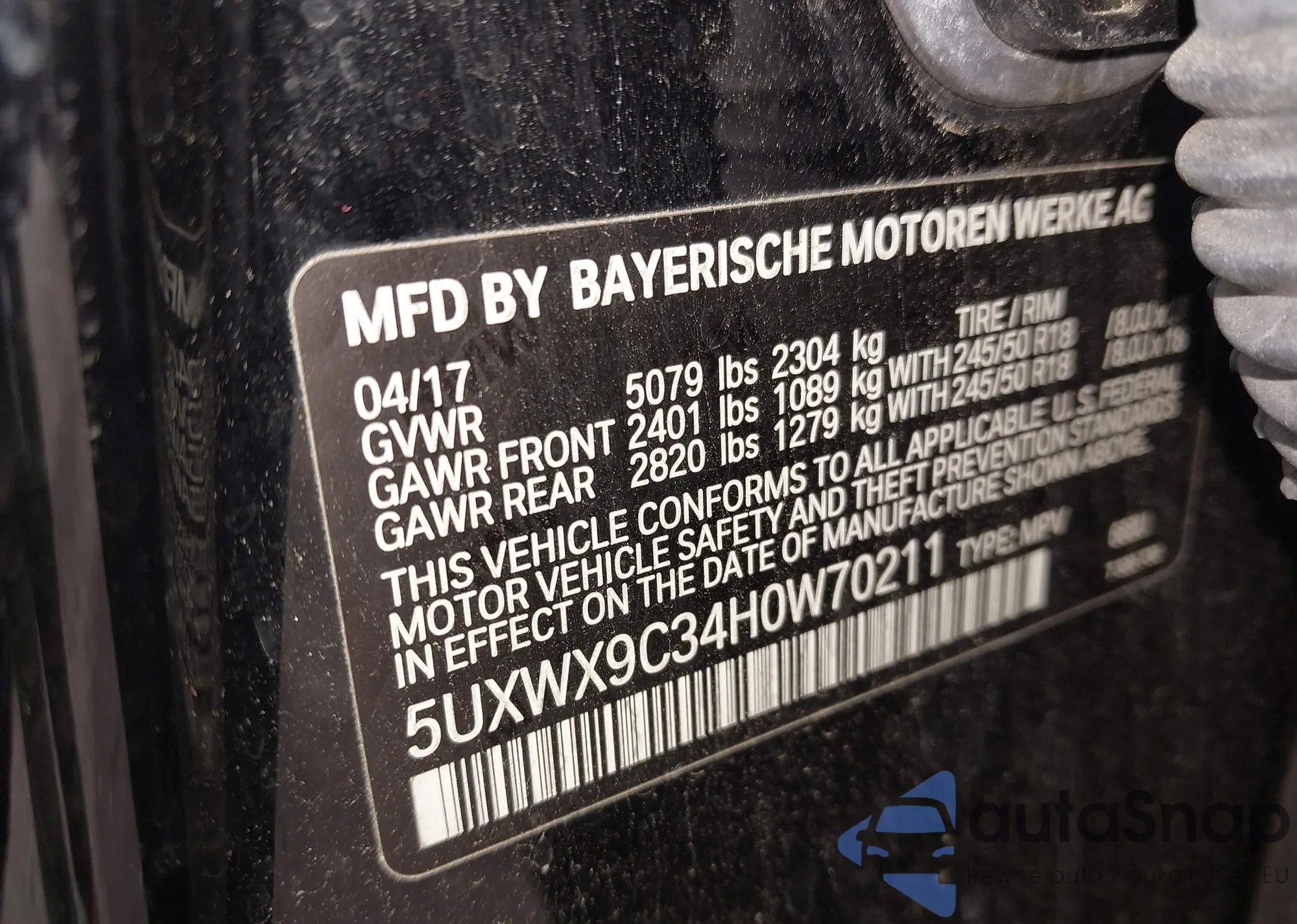 • VIN WBA8F1C51JAE93178