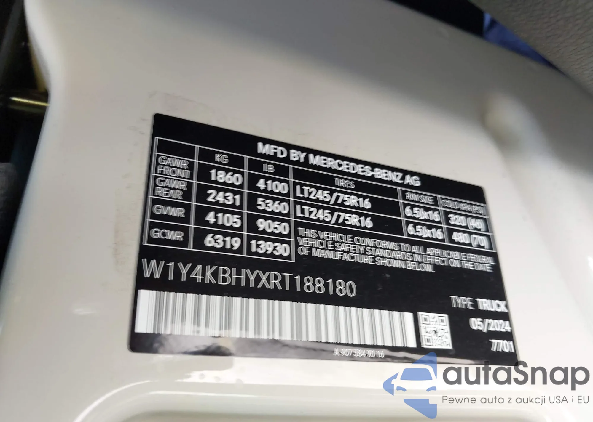 • VIN W1Y4KBHYXRT188180