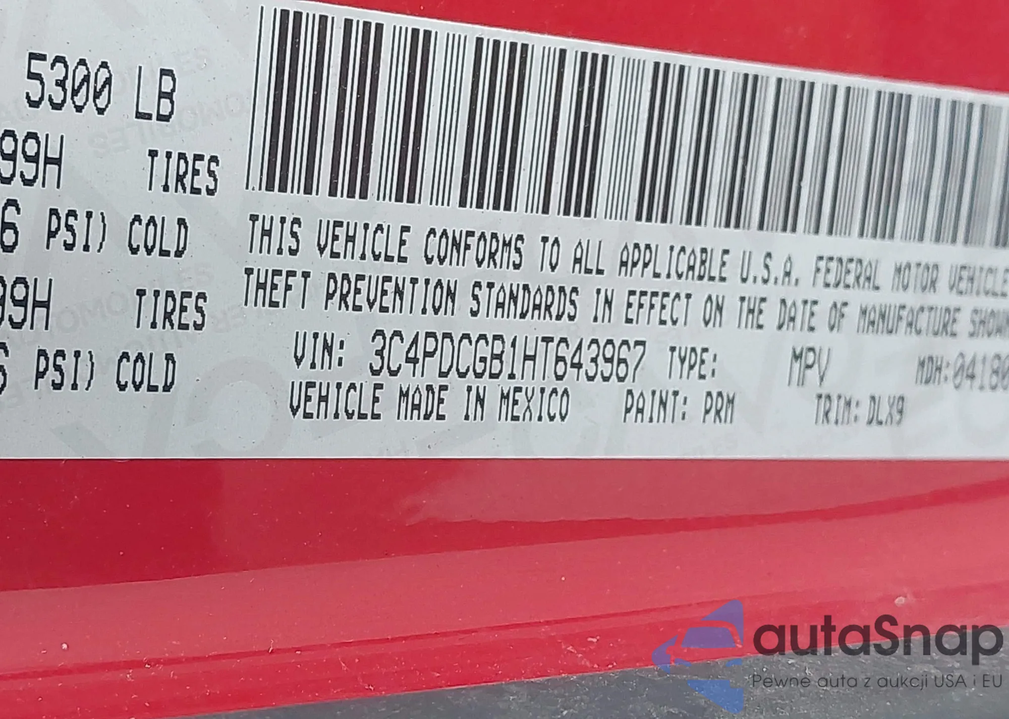 • VIN 3C4PDCGB1HT643967