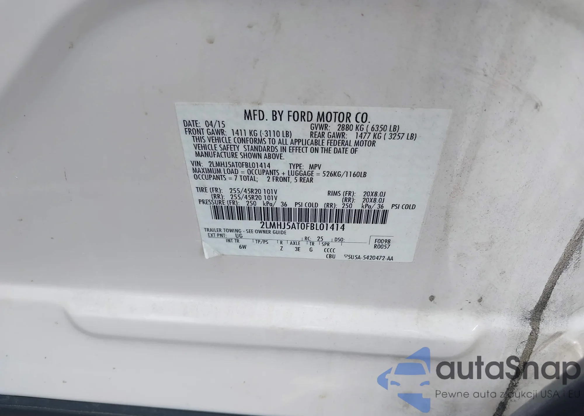 • VIN 2LMHJ5AT0FBL01414
