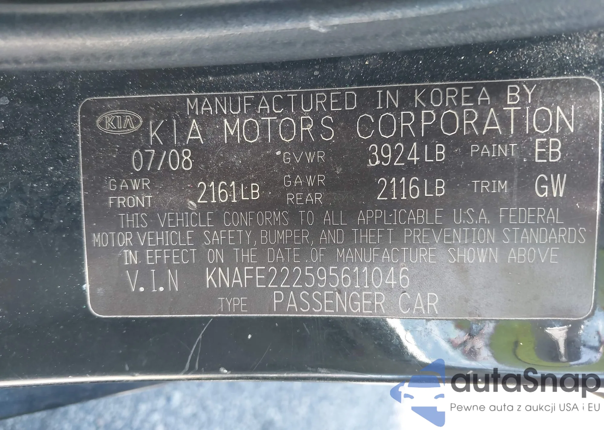 LOT: 42822090 VIN: KNAFE222595611046