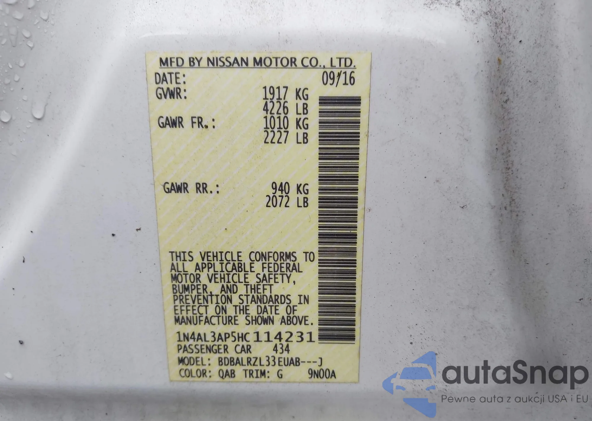 • VIN WDCGG8HBXAF490373