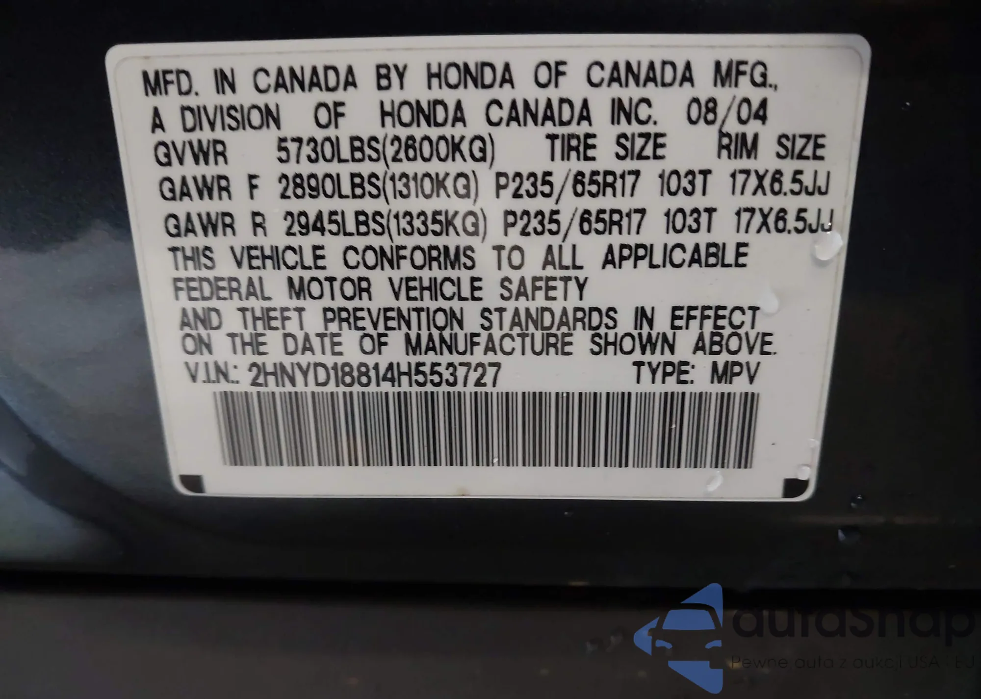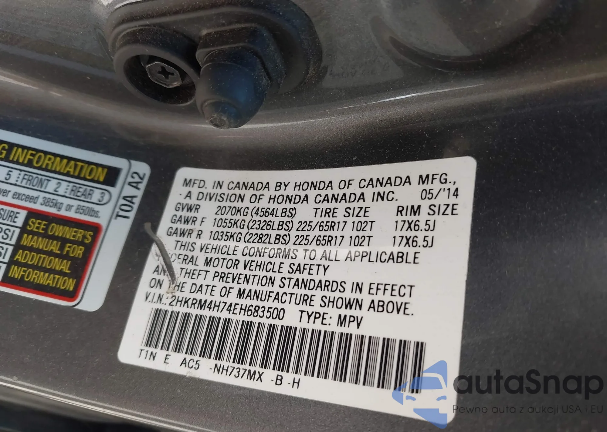 • VIN 2HKRM4H74EH683500