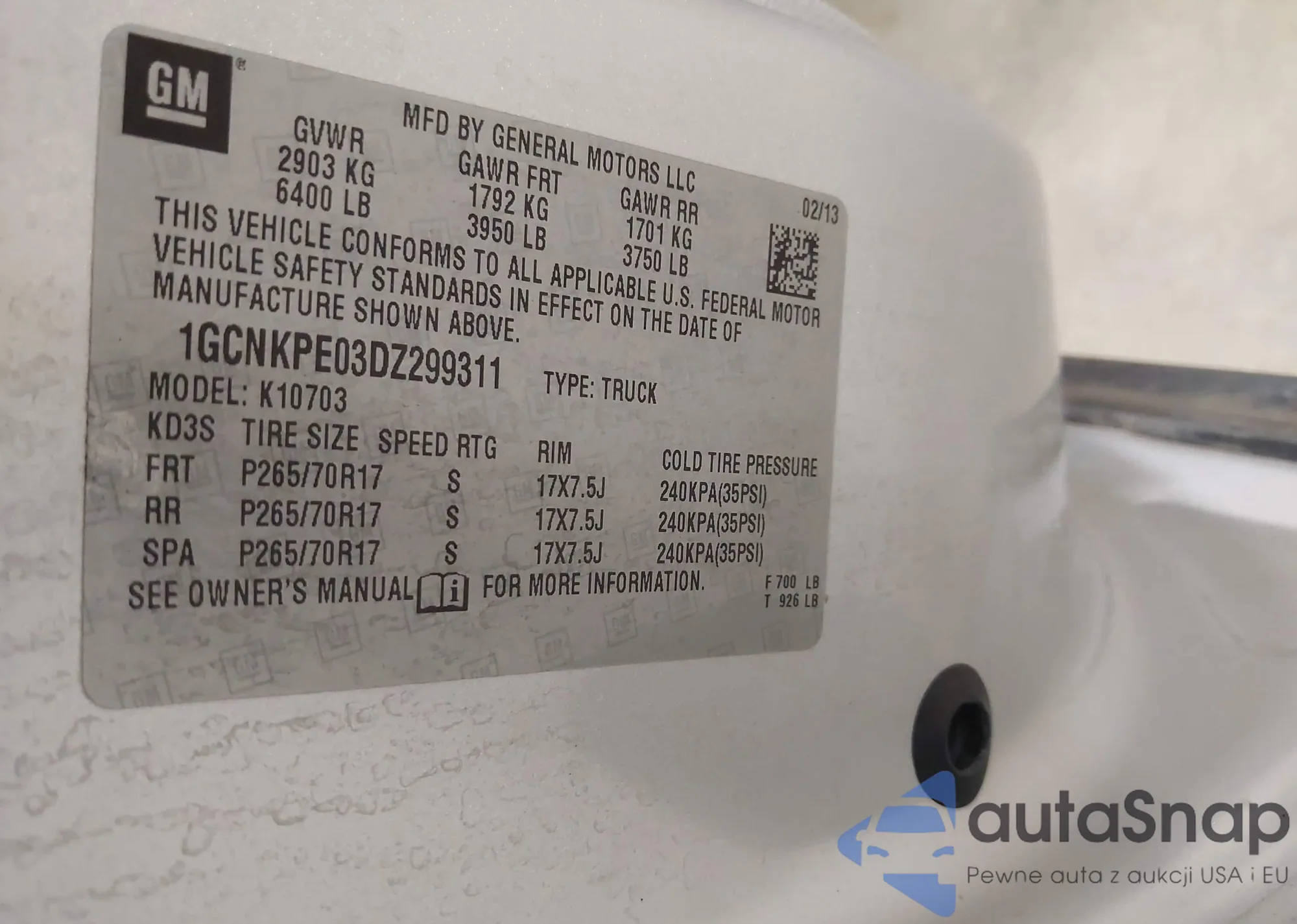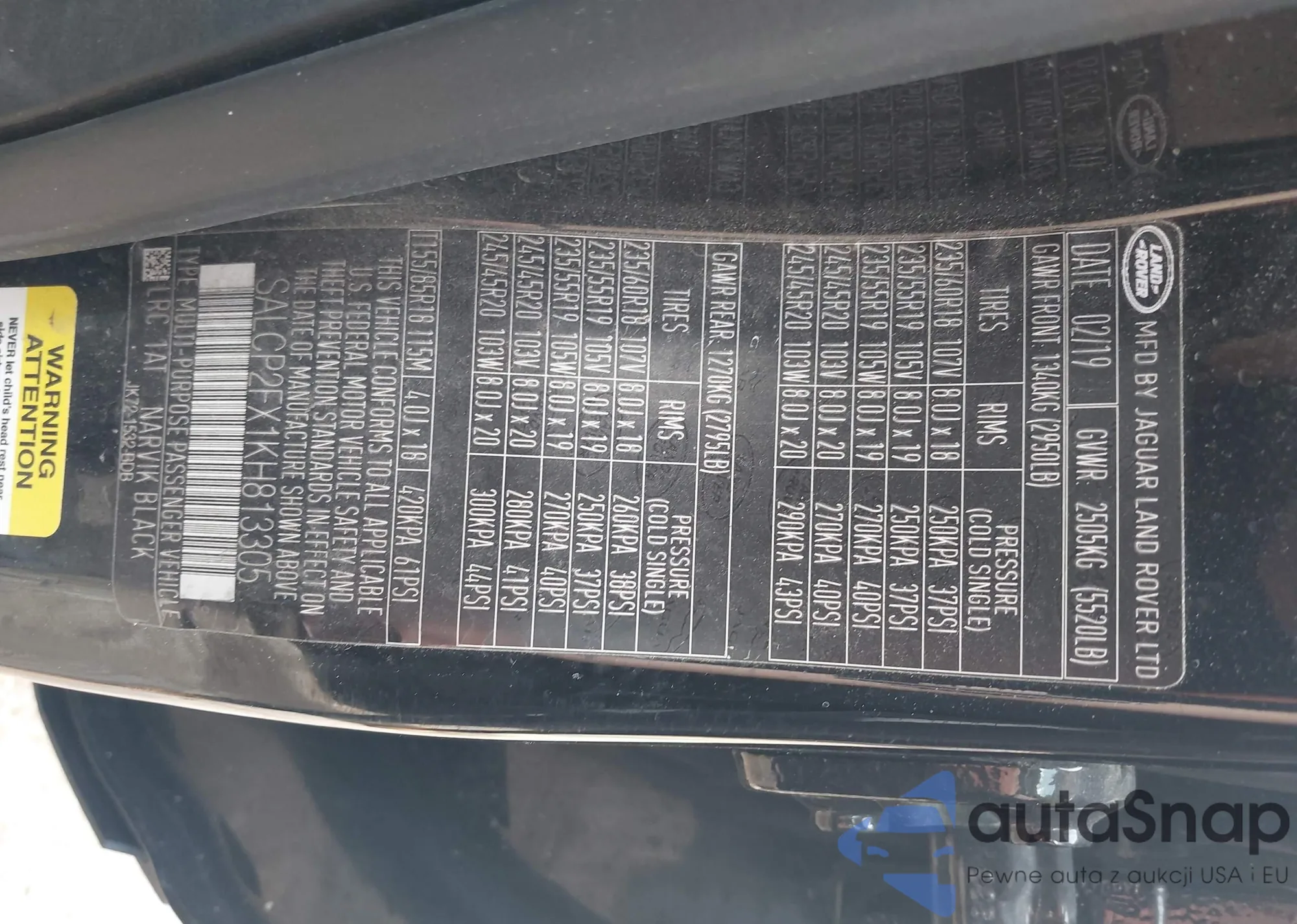 • VIN SALCP2FX1KH813305
