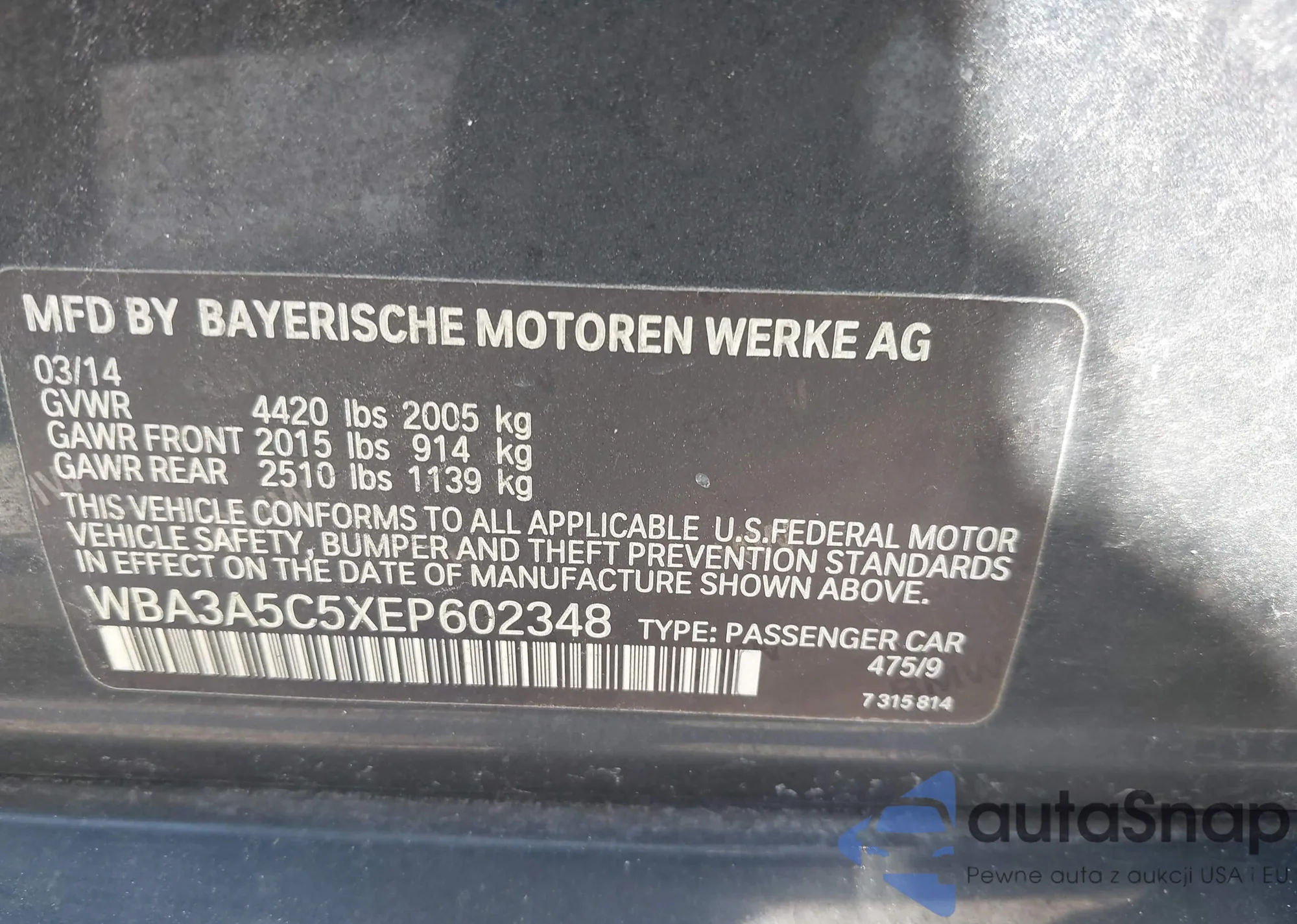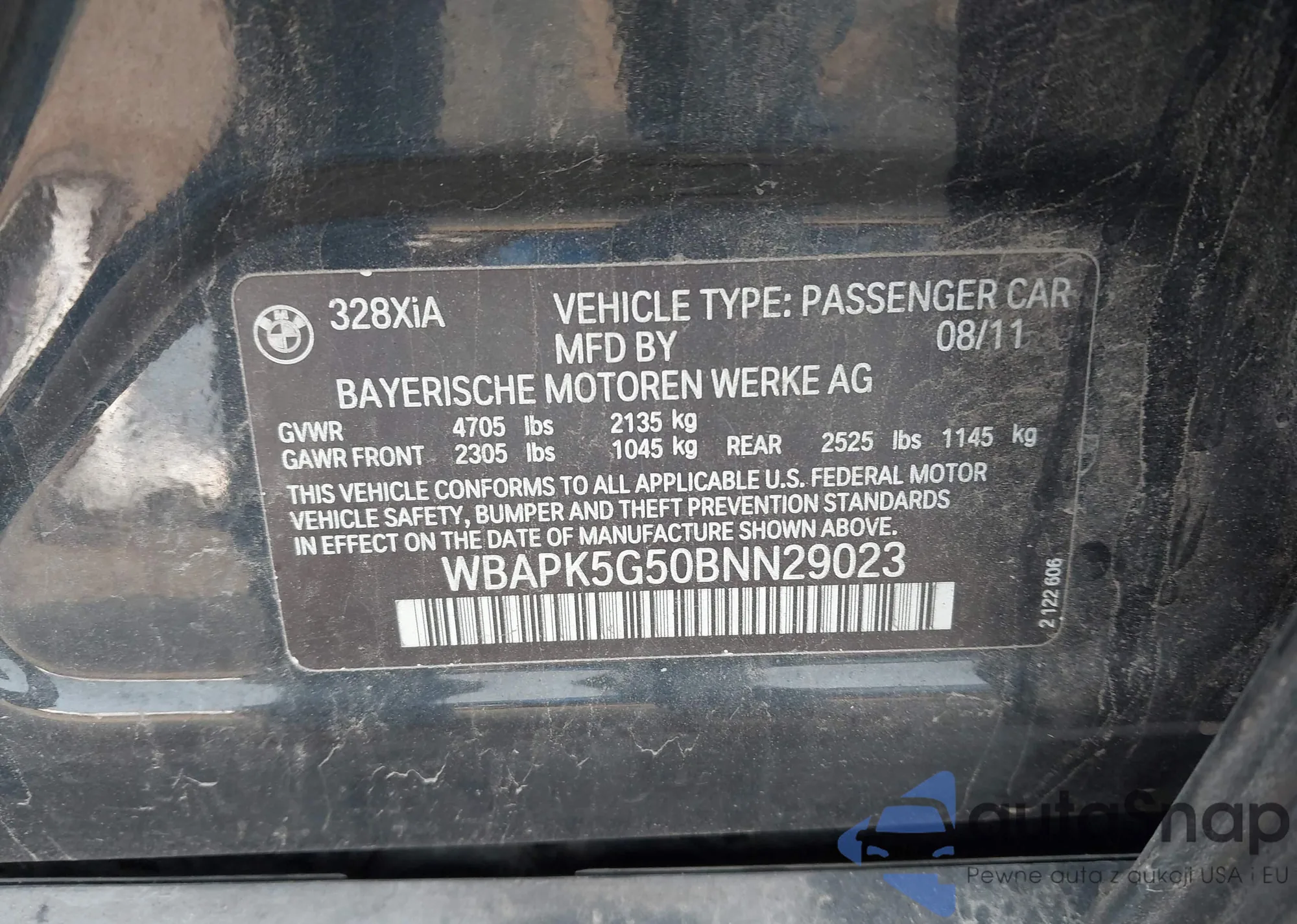 LOT: 42905059 VIN: WBAPK5G50BNN29023