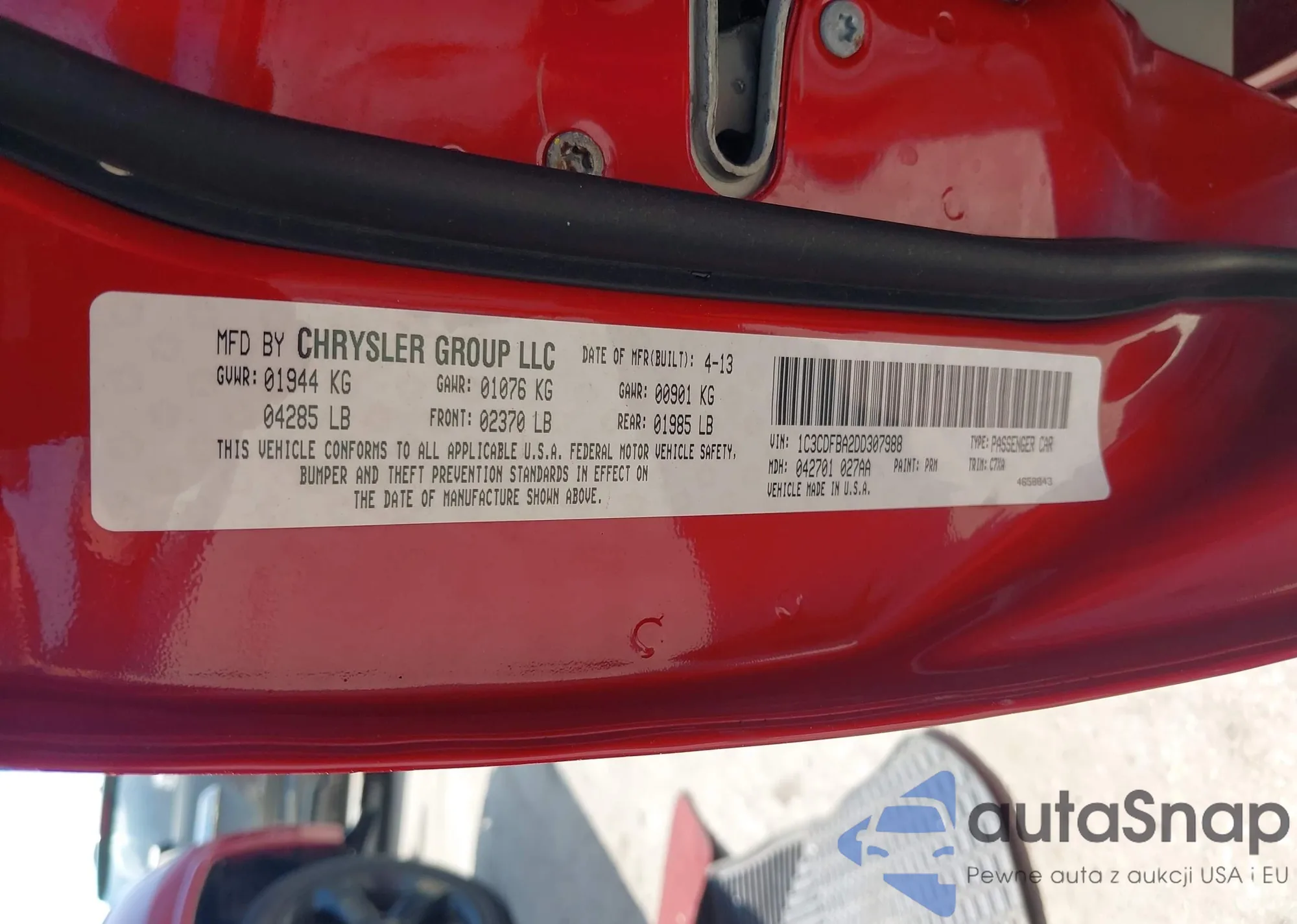 LOT: 42676277 VIN: 1C3CDFBA2DD307988
