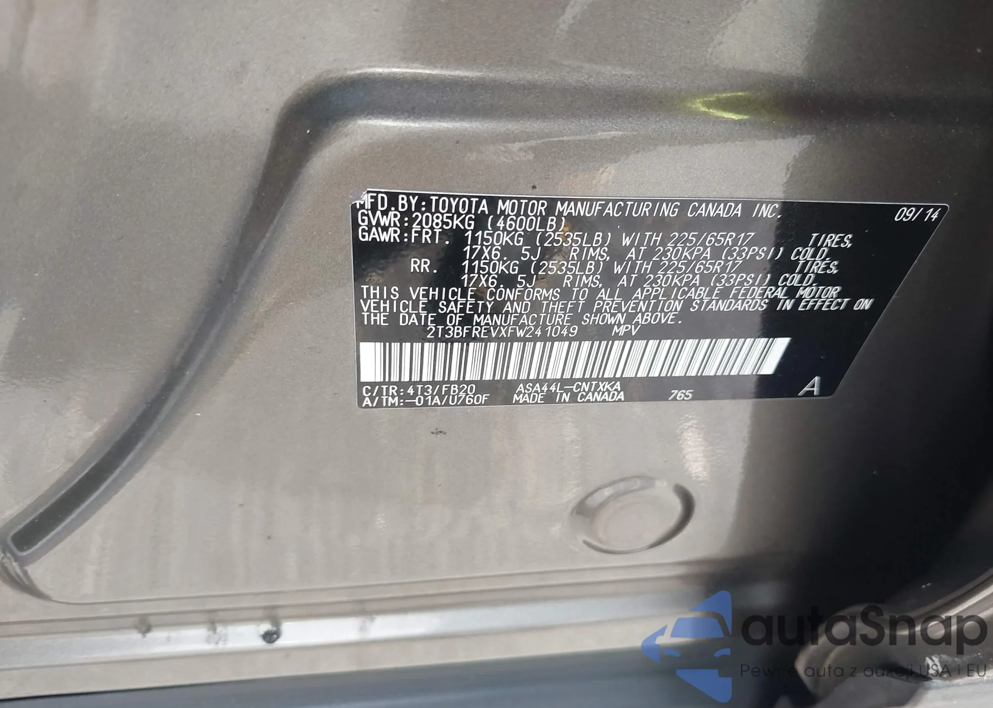 LOT: 42725250 VIN: 2T3BFREVXFW241049