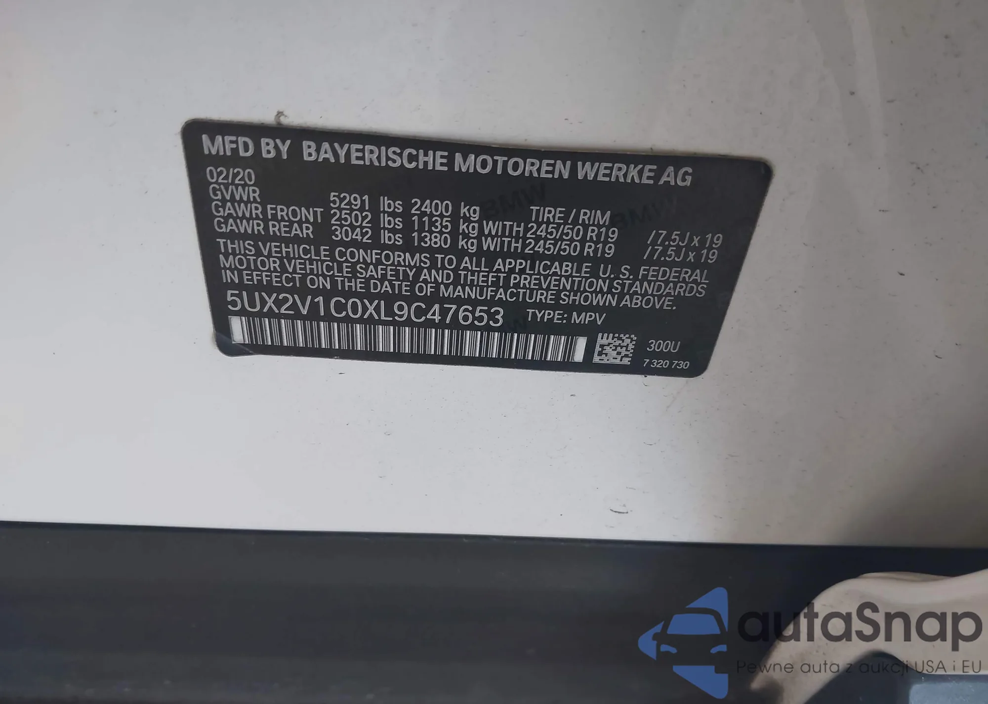 • VIN 5UX2V1C0XL9C47653