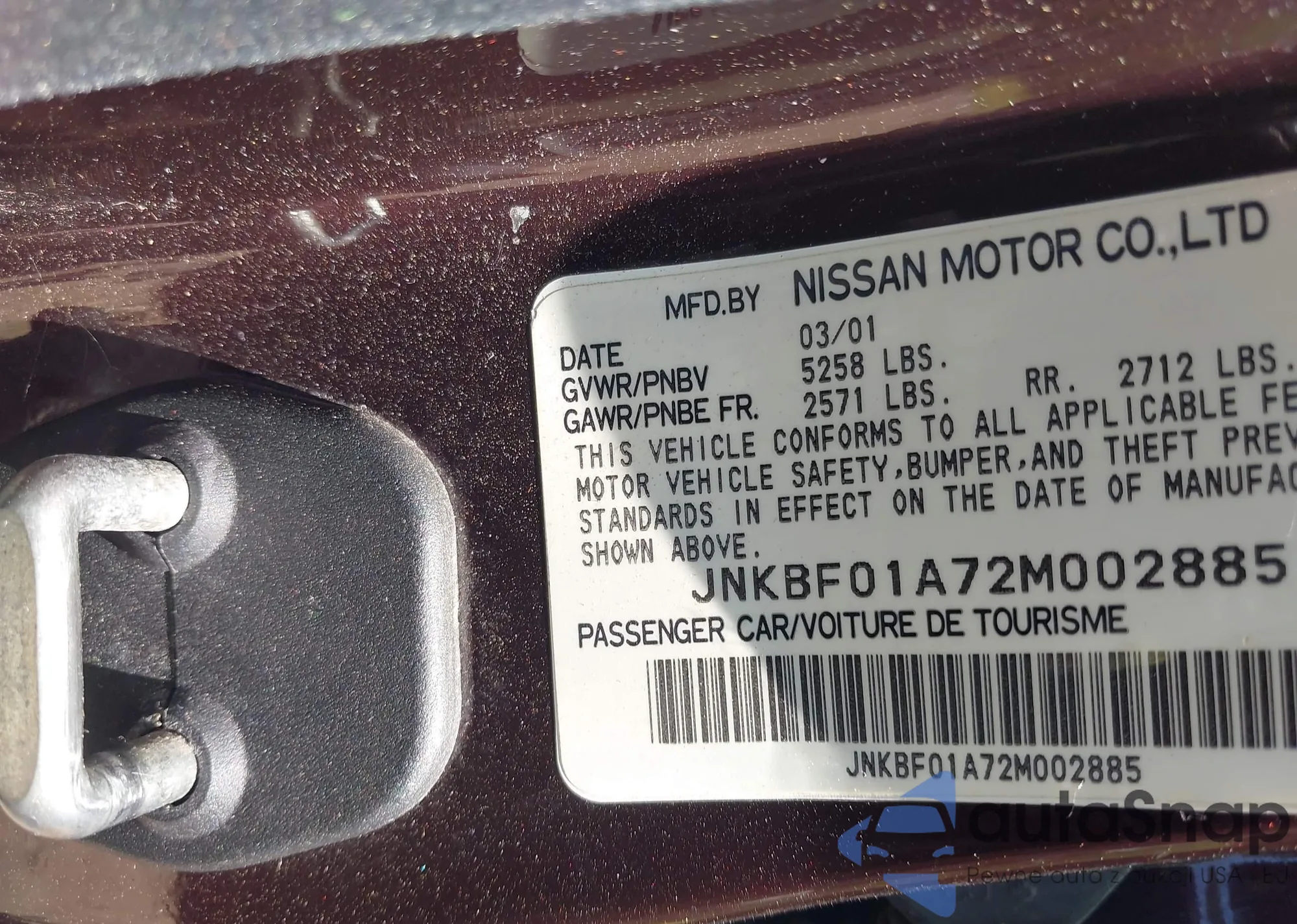 • VIN KL7CJPSM1MB375261