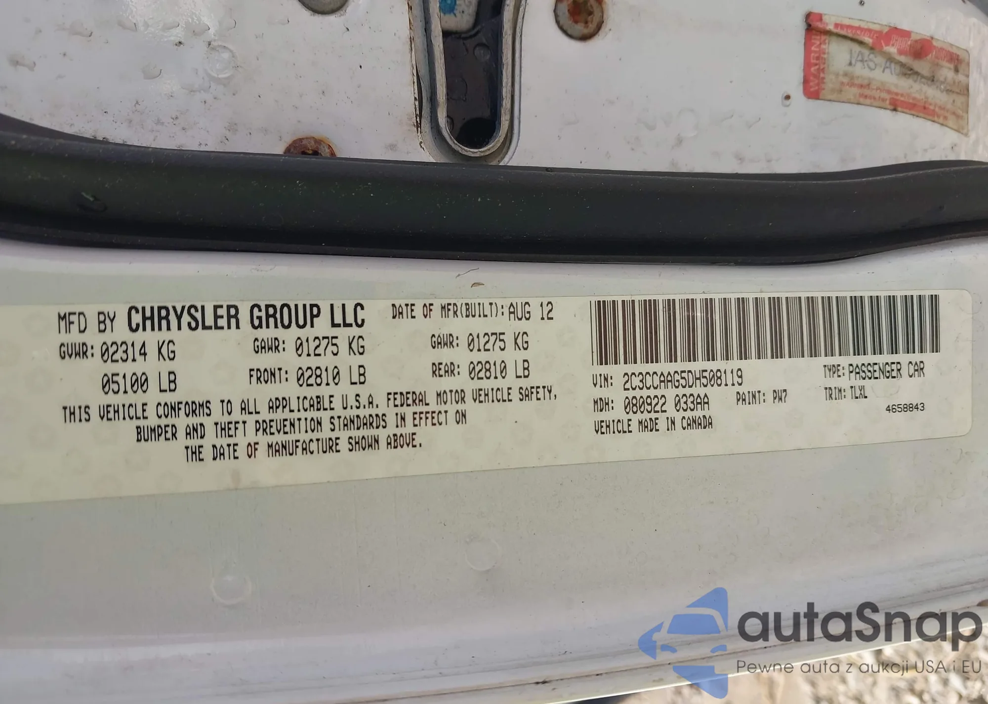 • VIN 2C3CCAAG5DH508119