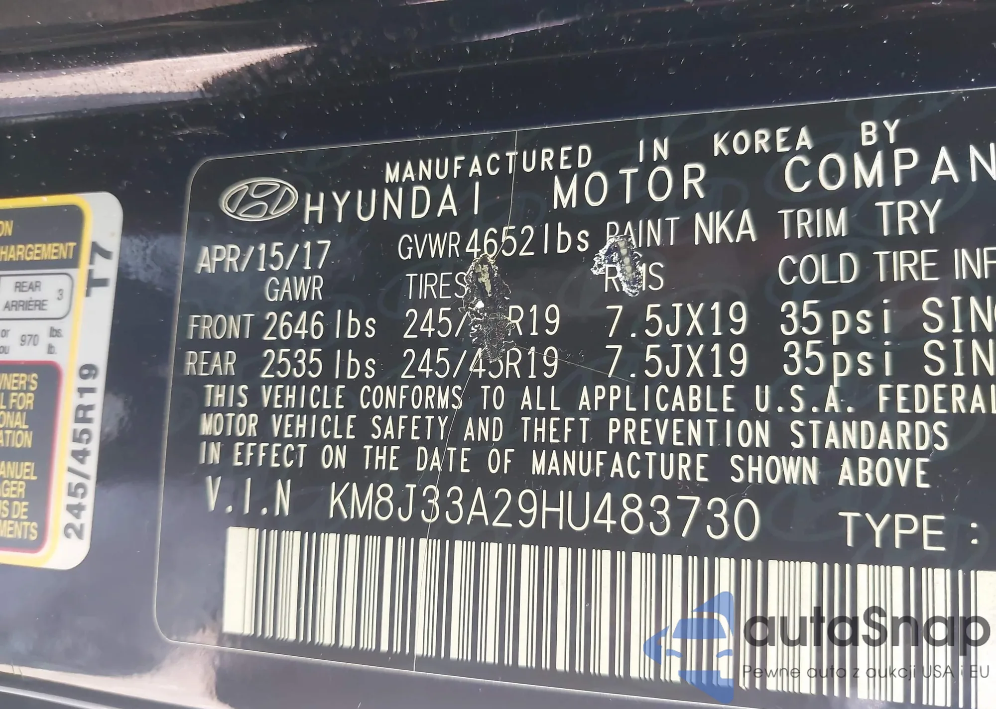 • VIN KM8J33A29HU483730