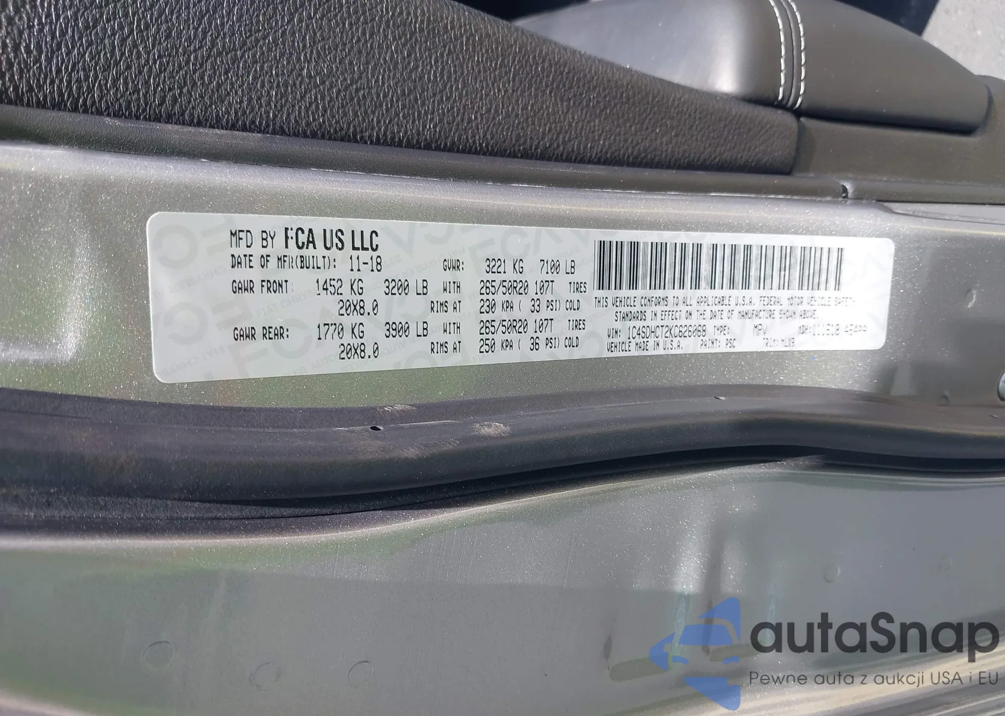 LOT: 42901298 VIN: 1C4SDHCT2KC626068
