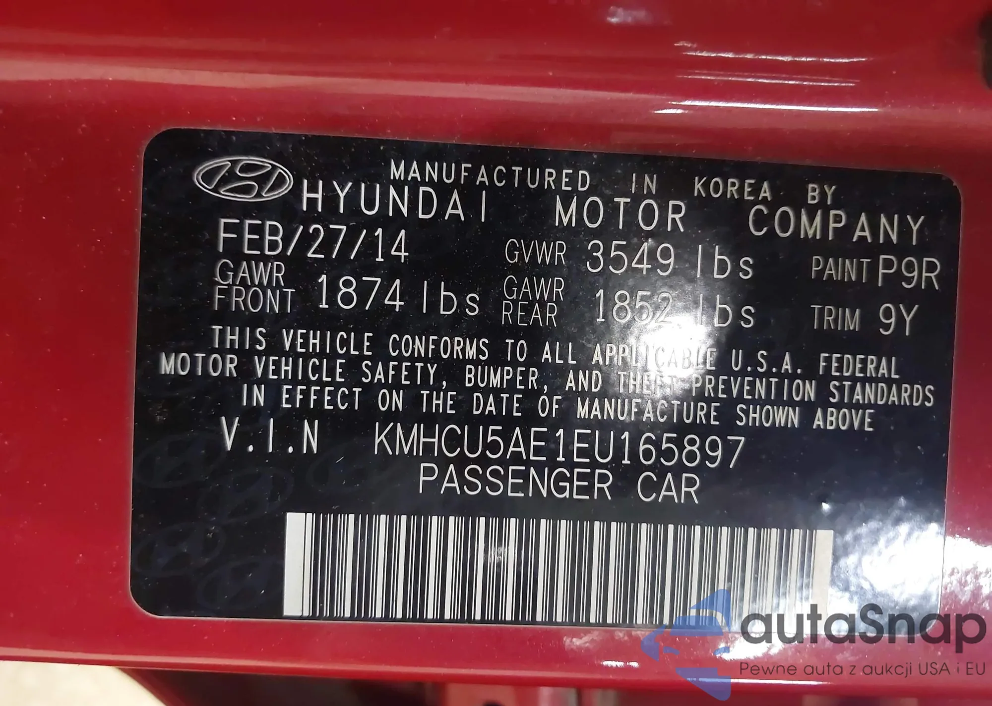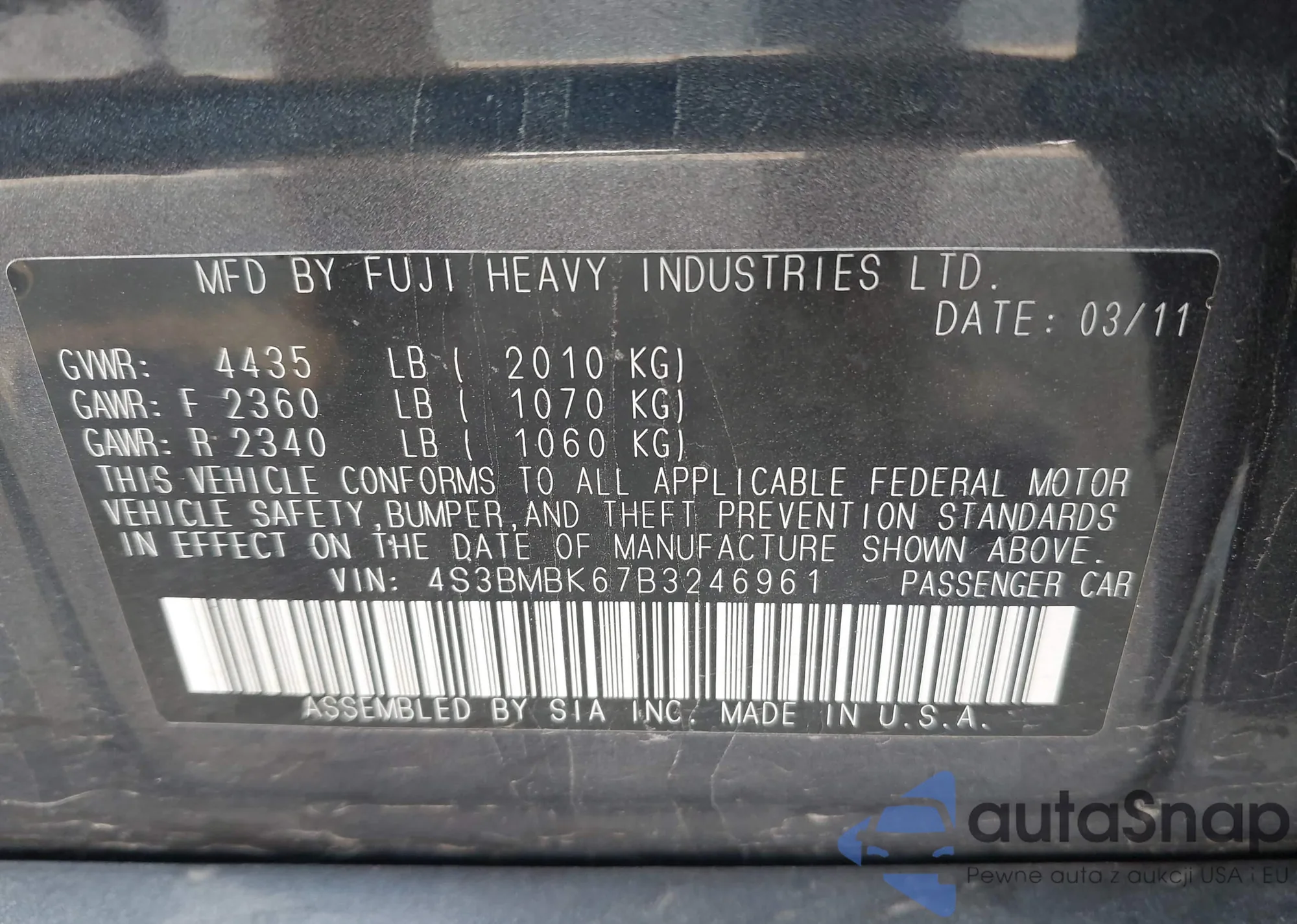 • VIN 1HGCP2F49AA119838