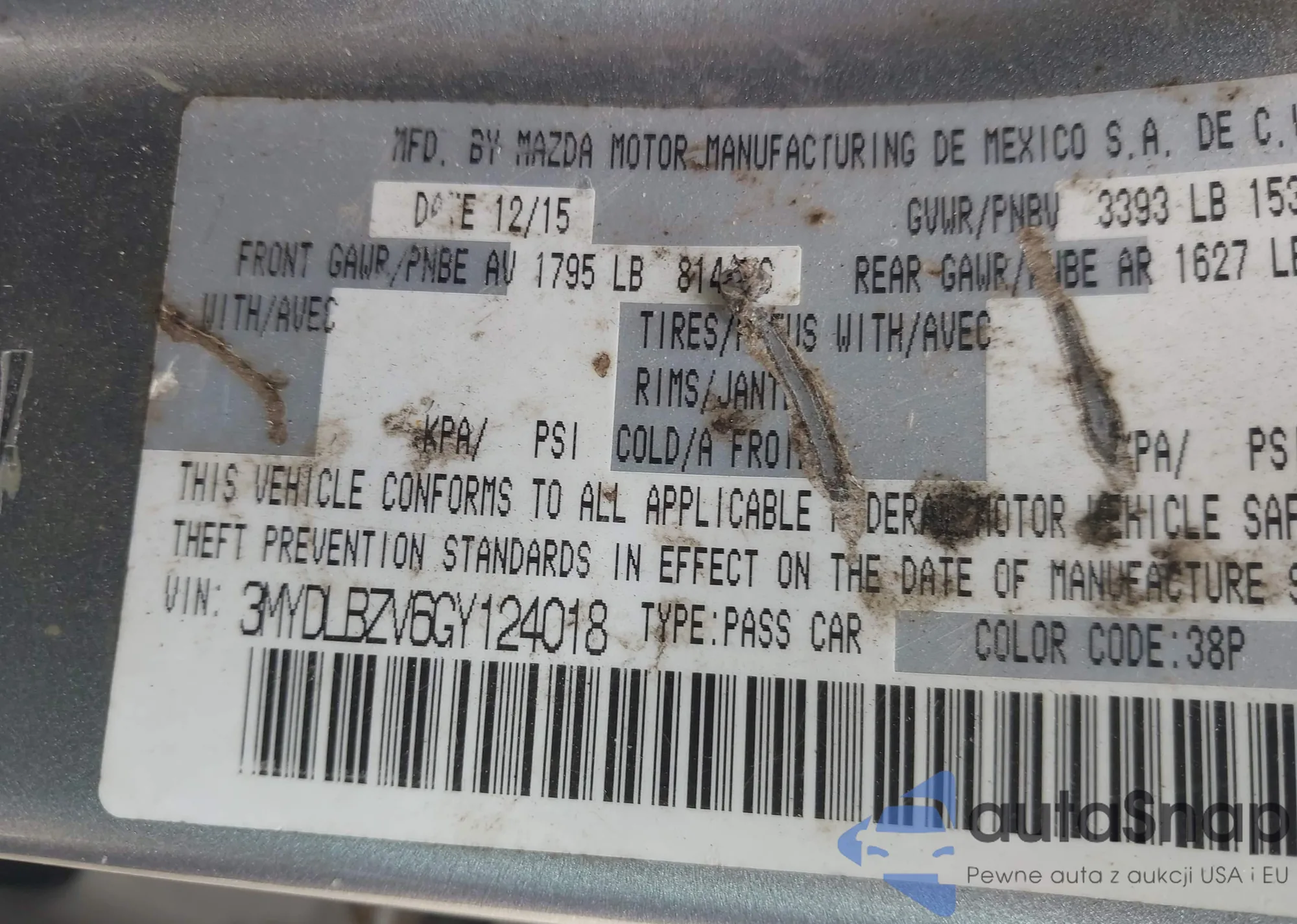 • VIN 3MYDLBZV6GY124018