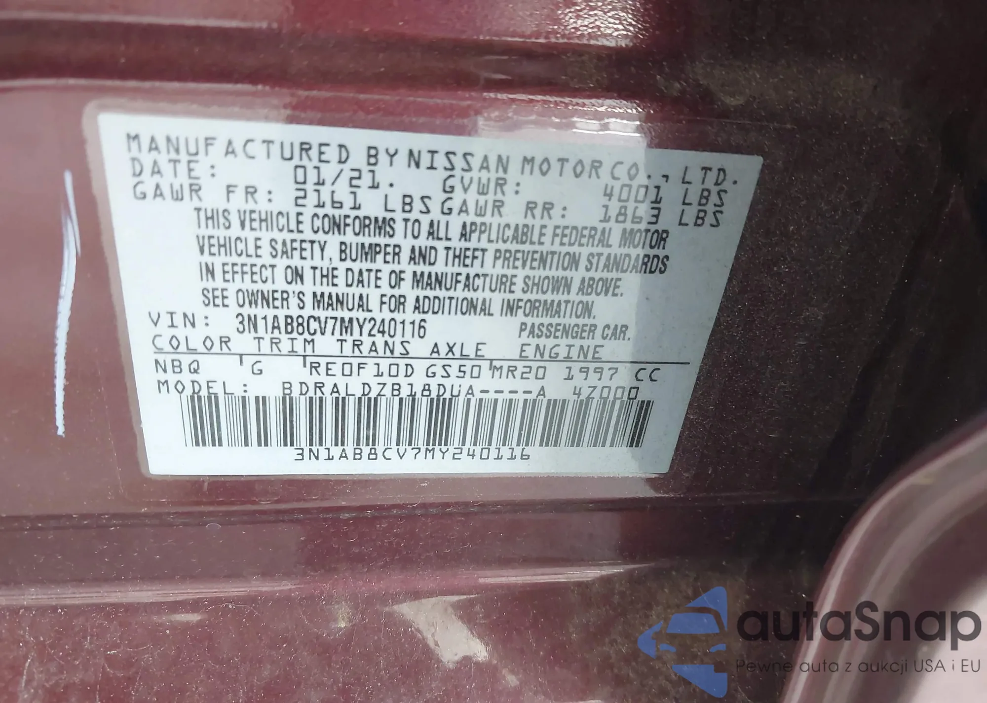• VIN 3N1AB8CV7MY240116