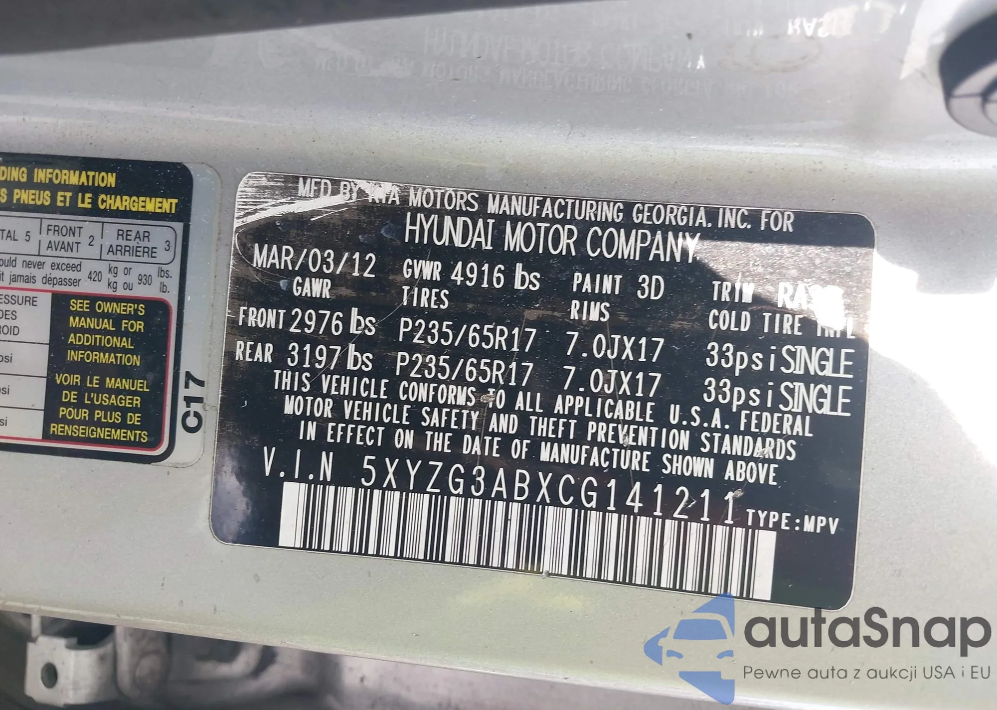 • VIN 5XYZG3ABXCG141211