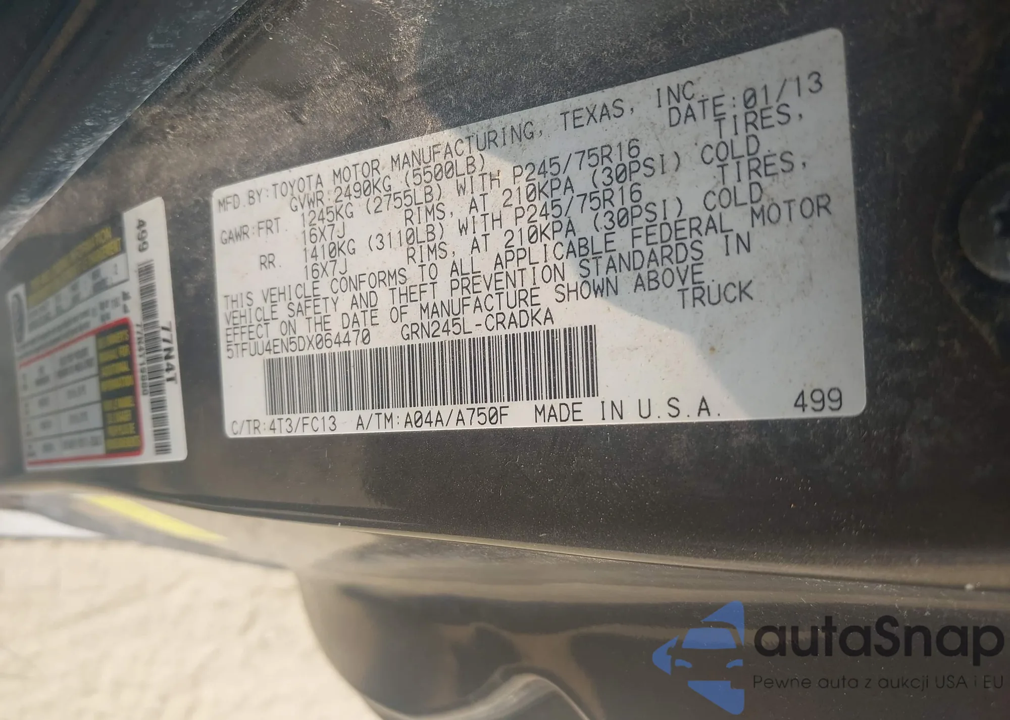 • VIN 1HGCR2F35DA247788