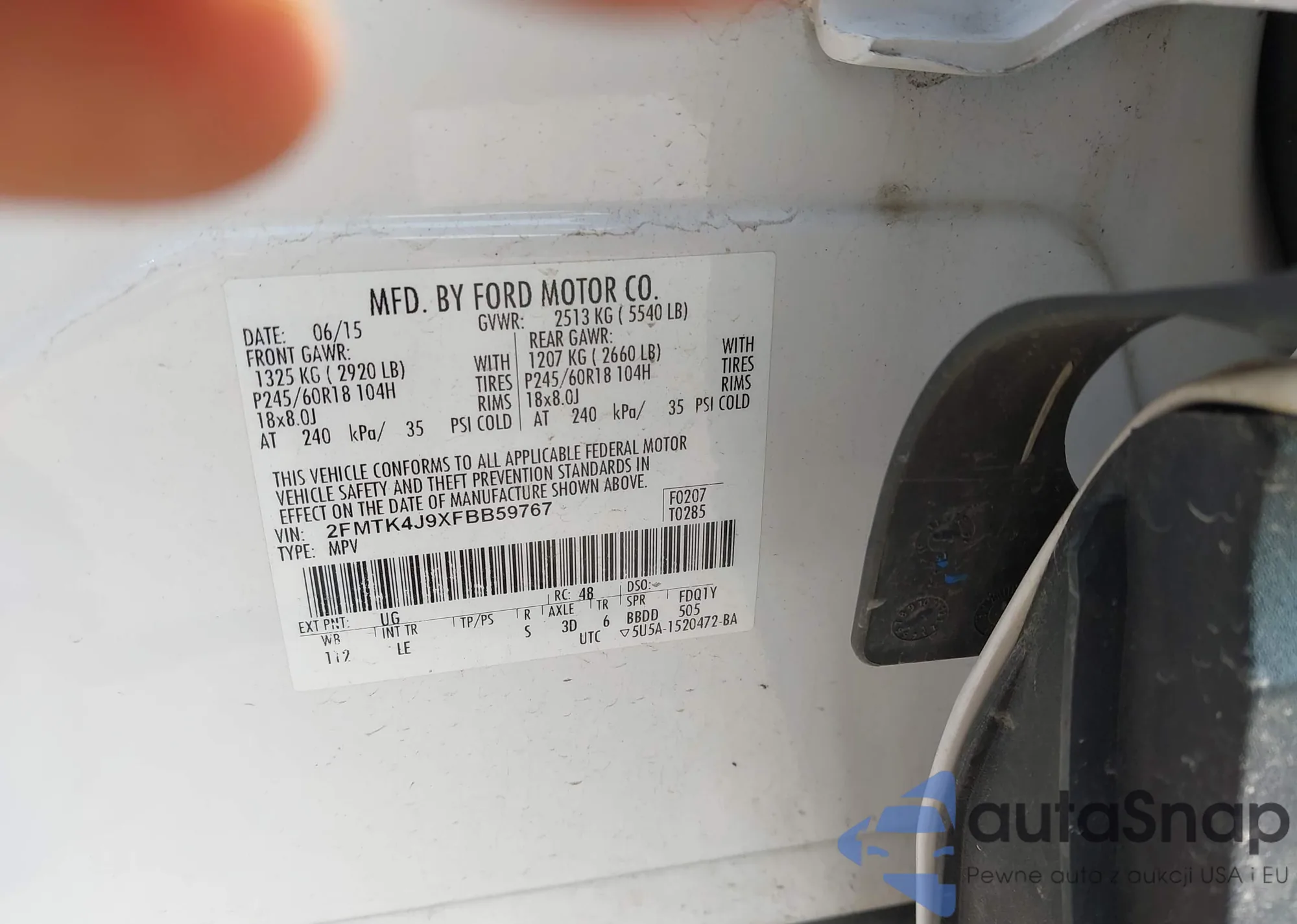 LOT: 42958465 VIN: 5N1AL0MN9FC524851